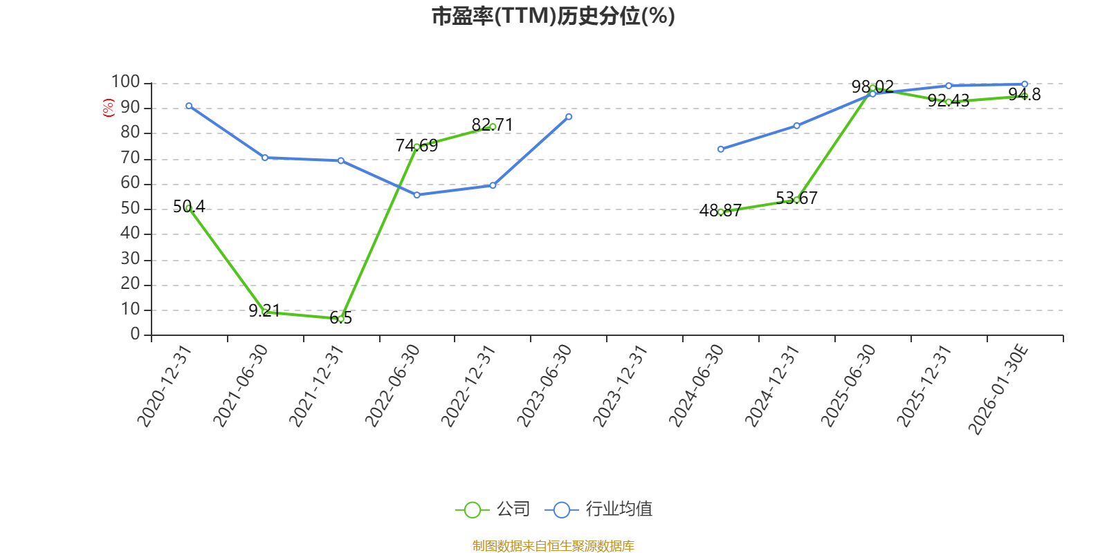 市盈率、市净率为负时,不显示当期分位数,会导致折线图中断。