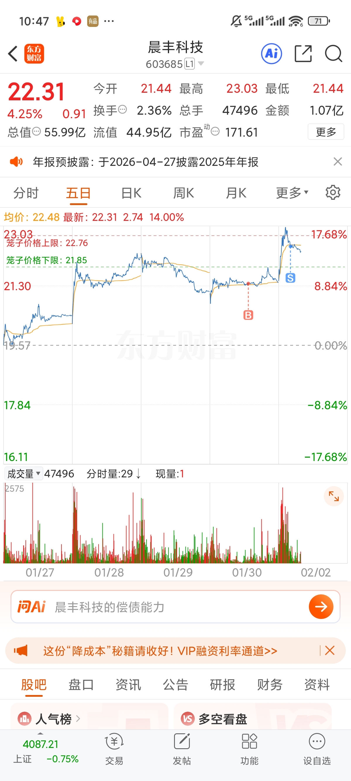 $晨丰科技(SH603685)$