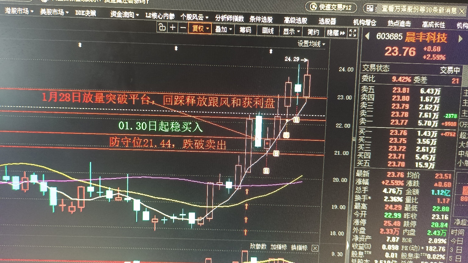 $晨丰科技(SH603685)$ 晨丰今天开盘冲高回落,10点开始反功,势如破竹,应该调整到位了。
