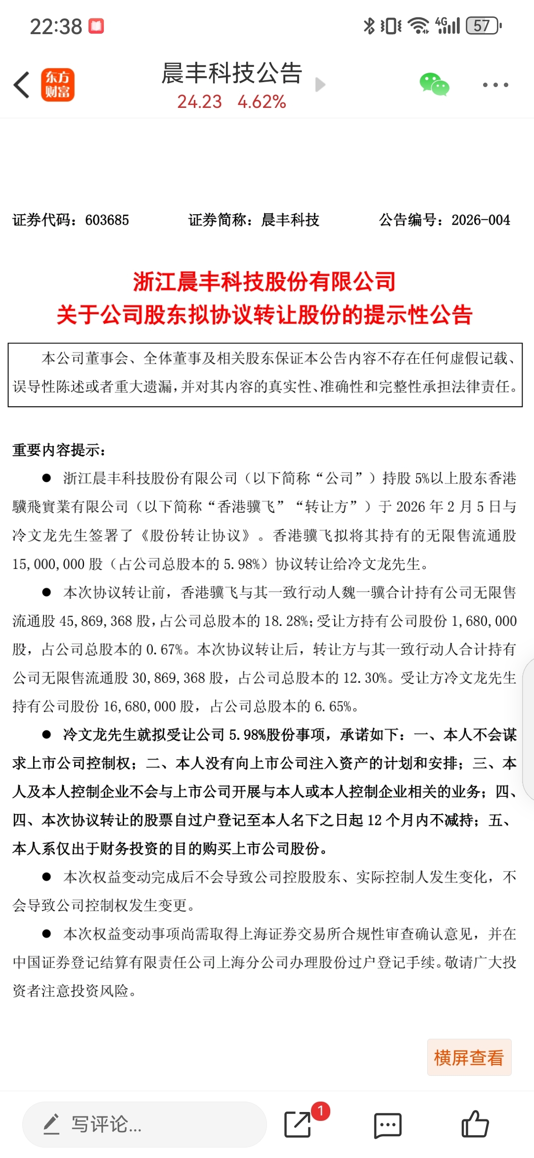 $晨丰科技(SH603685)$ 资本游戏主角出场???!