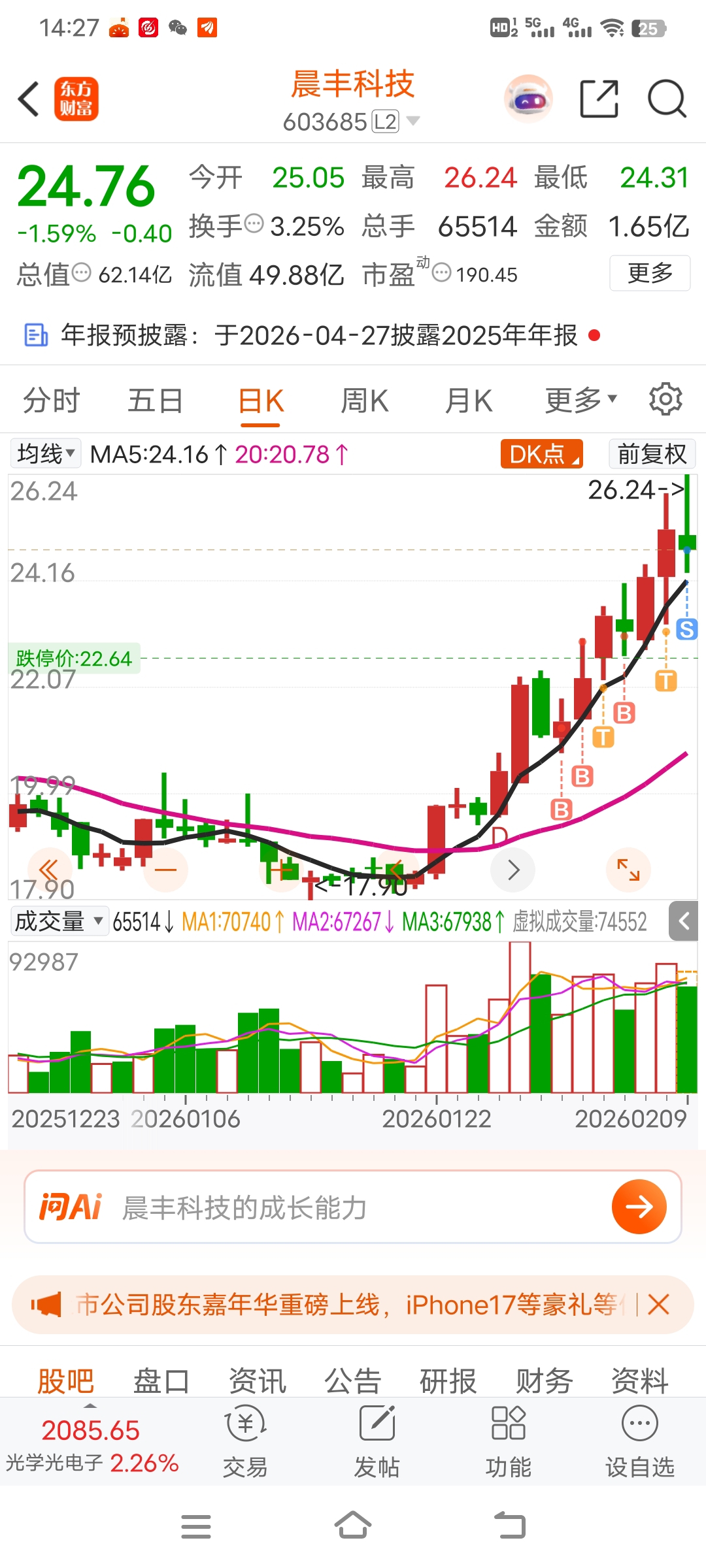 $晨丰科技(SH603685)$ 晨丰今天冲高回落,分歧大,主力有明显出货的意图,先出来再看,如果明天有包再进来。