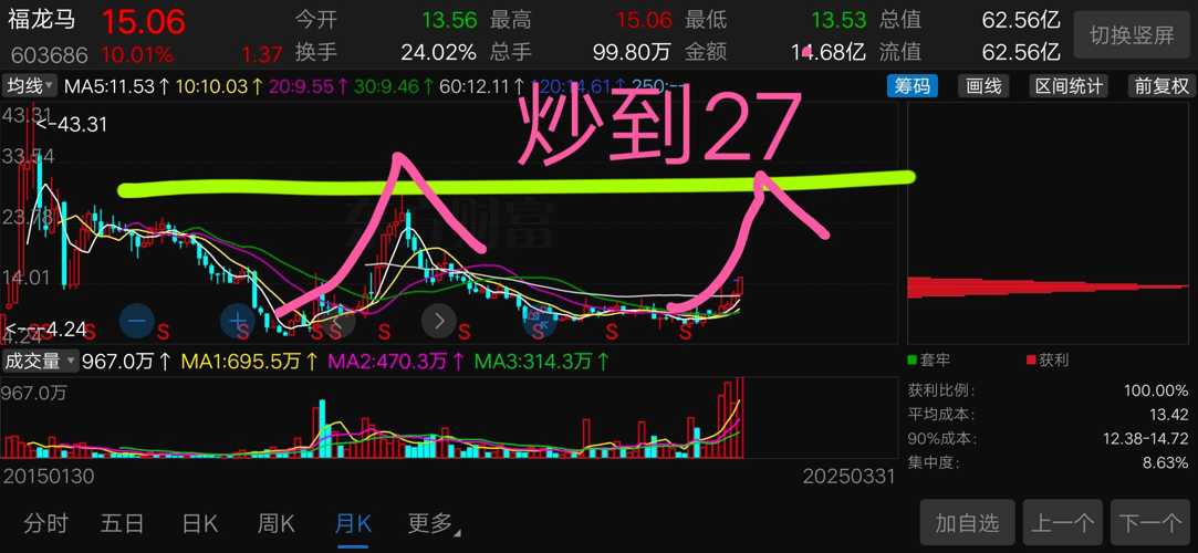 $福龙马(SH603686)$$万里马(SZ300591)$继续炒你马要炒到27,挣钱就是如此“容易”,只需要躺平到27卖给操盘就行,不过炒高也没用,根本没人接盘,量化操空的市场,寸草不生,炒高后散户都犹如惊弓之鸟,被整怕了,很多人根本不知道量化是个啥,还以为有一串代码就能实现,有的还以为游资是量化的对手,拉涨停爆头量化替散户报仇?扯淡,我来告诉你们,机构和量化和游资有说不清道不明的关系,要实现我们这里的所谓量化交易,这几个条件缺一不可,一资金量,二无数个耗子仓进行对倒,三程序化交易软件,四大数据支持,五你还必须开设机构交易账户,公募基金虽然有各种量化工具,但这年头公募是没法明着大规模实施量化的,多少眼睛盯着,束手束脚的,所以必须借助游资,游资充当它们的耗子仓和操盘手!这年头,要做量化首先必须炒高股价,当然不一定非得多少个涨停,视情况而定,有的一两个涨停就可以搞量化了,只要有足够多的散户追进了有利可图就可以搞,反而那种很多个涨停的不好做,那种只是它们拉高来做个标杆样品的,拉得太高散户反倒不敢接,就是要让散户照着样式打板其他股从而实施量化!之所以你看到我们大盘永远3000,就是因为稍微反弹一点给你颗甜头量化就开始收葛了!量化就是本来只有50个亿的成交量,它可以每秒钟高频出300个亿的虚假成交量!那么它们怎么具体实施的呢?流程是这样的,首先由券商的合规部运营管理部监空散户账户交易记录制作成大数据软件,开发机构版量化软件,各大券商都是资源共享的,公募也好私募也罢游资也是,它们手里都有这套量化交易系统,并且它们在券商那里开通的都是机构账户,年费不菲,和散户账户不一样的,机构账户是不计入量化系统的,或者说计入量化系统但券商是把机构账户和散户账户实施分类管理的,有助于它们实施量化时准确区分那些量是散户哪些是它们自己的,有了工具,公私募和游资就可以利用它们手里的几百个几千个账户互相对倒高频了,只要设定好条件电脑程序化自动收割,根本不费劲,作钱机器,你们的每一分钱都逃不过它们的算计,神奇吧,有的朋友觉得既然机构量化它们为何不量化游资的钱来得更快更多,何必专门针对散户,洒得很,我说了,单凭机构没法准确实施量化,它们有求于游资,二这年头游资都是被某队基金收编了的,分布世界各地龙虎榜,你敢单独搞就踢出局,游资和私募的资金很多都来源于公募支持!难道你要它们自己量化自己?散户的钱都赚不完!