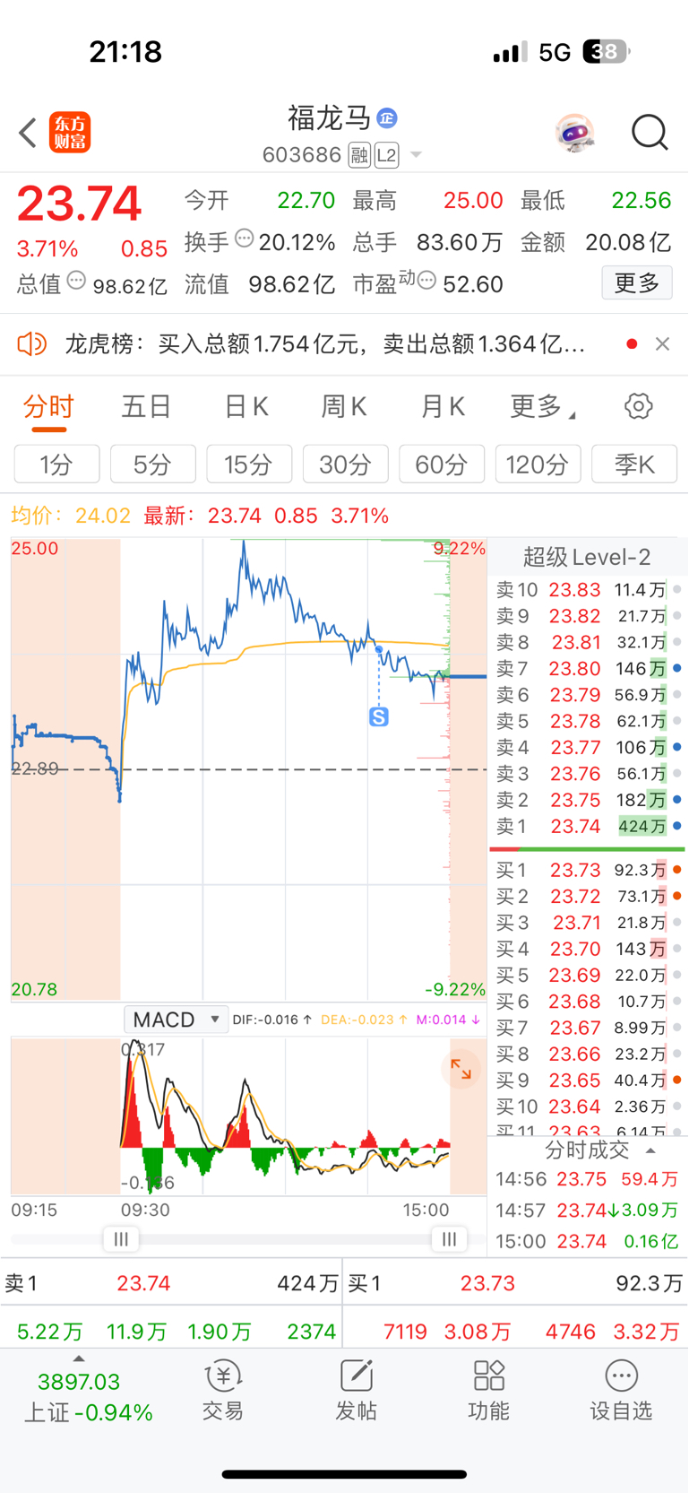 $福龙马(SH603686)$ #收盘点评# #复盘记录# #股市怎么看# 大盘不好,看着账户还是大红,还是要敬畏市场,感谢福龙马