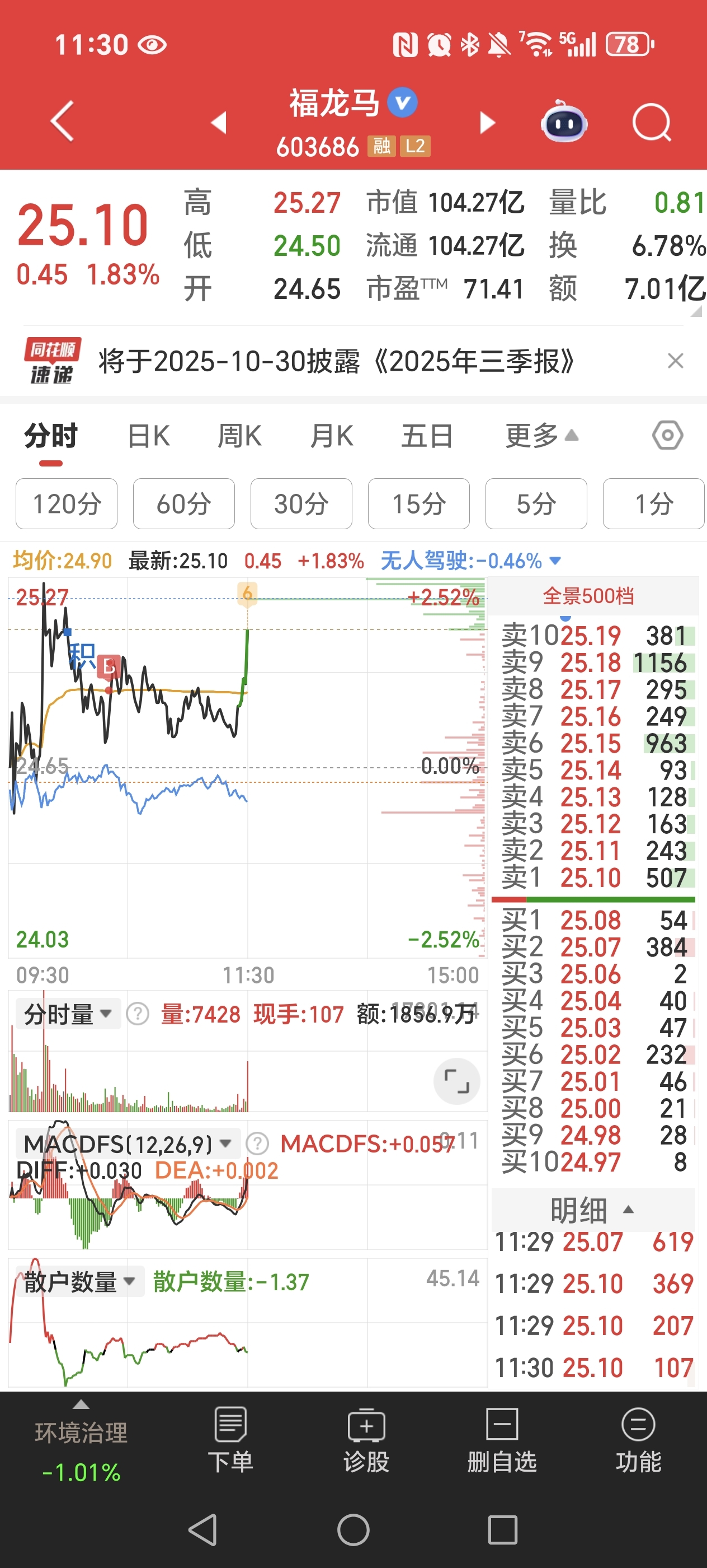 $福龙马(SH603686)$ 小马这几天做t总是做错,今天24.9又补了,看下午能不能起来吧