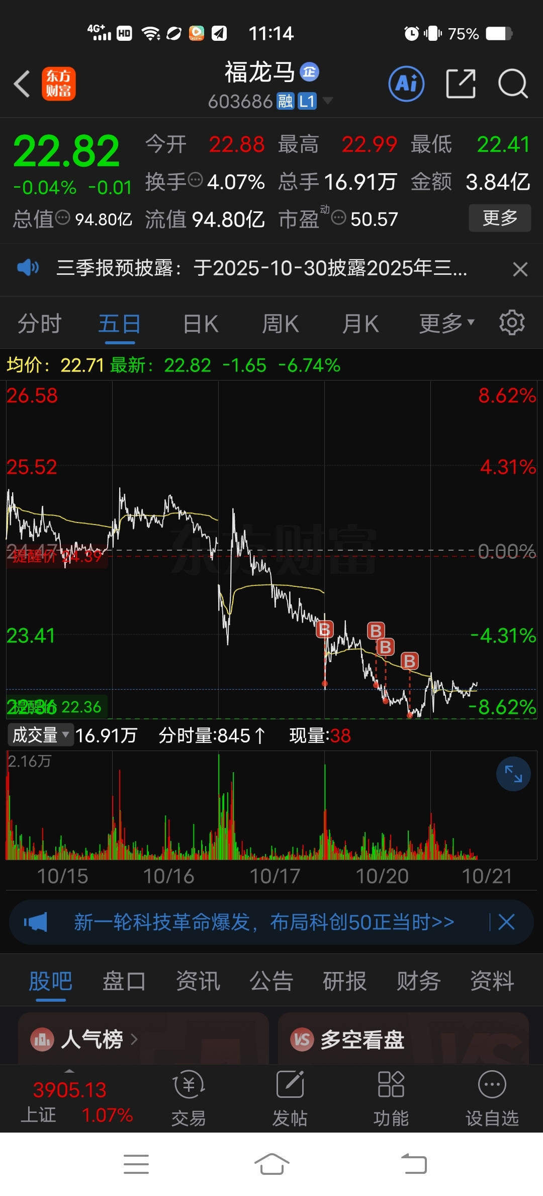 $福龙马(SH603686)$ 还有半仓不加不减等21.33