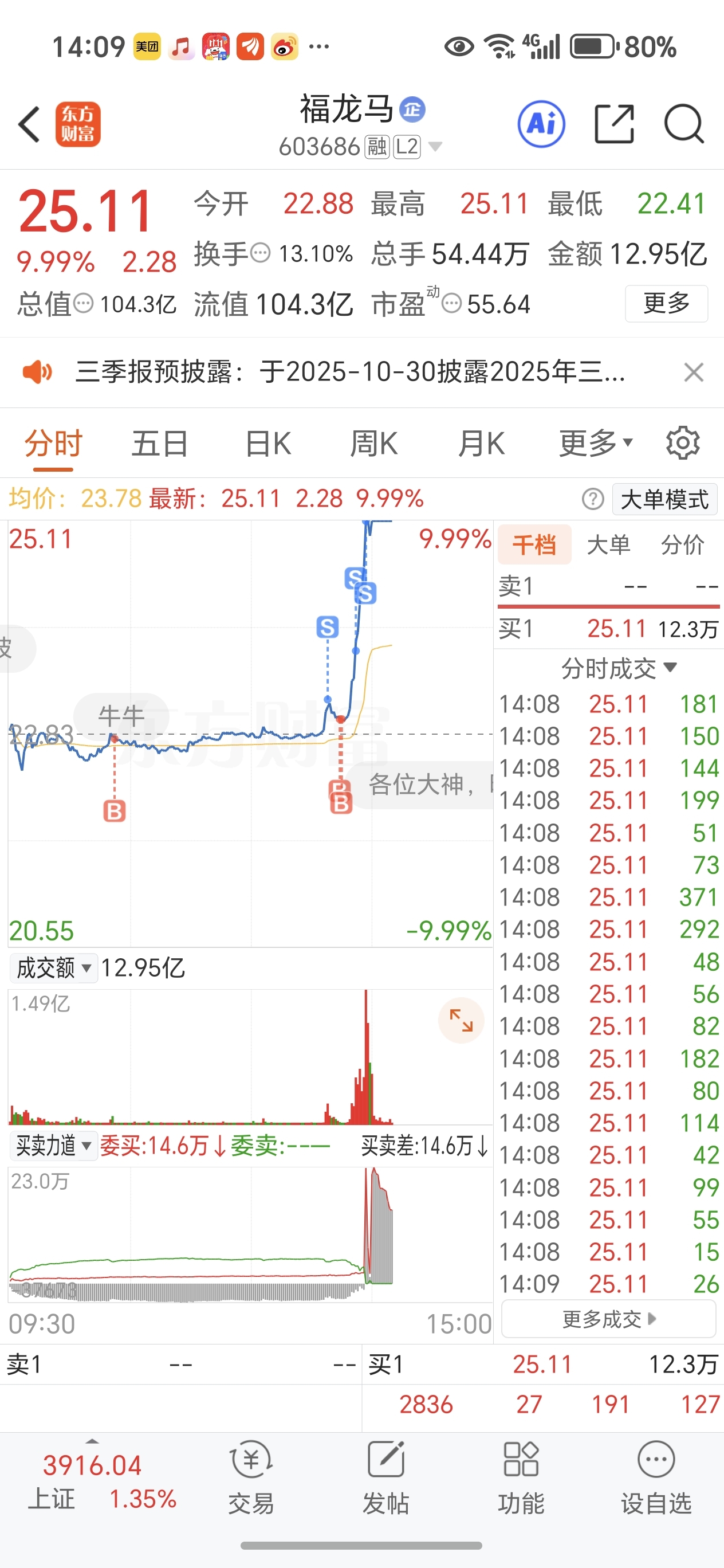 $福龙马(SH603686)$ 要是下来还能T