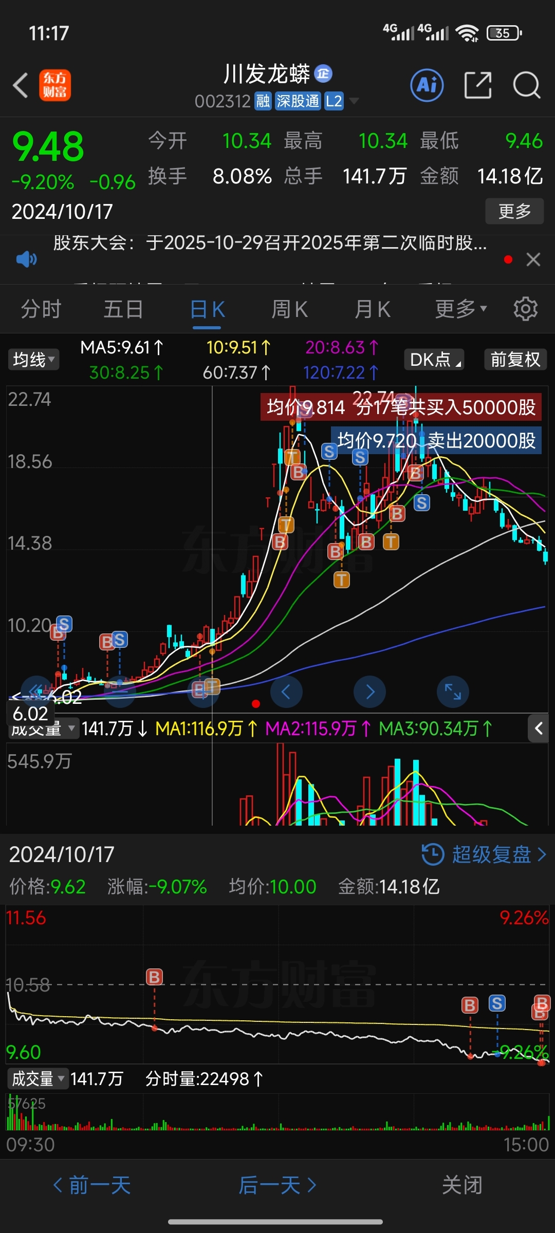 福龙马今天大概率跌停,跟去年川发龙蟒10.17号的感受很像,跌停就抄底!