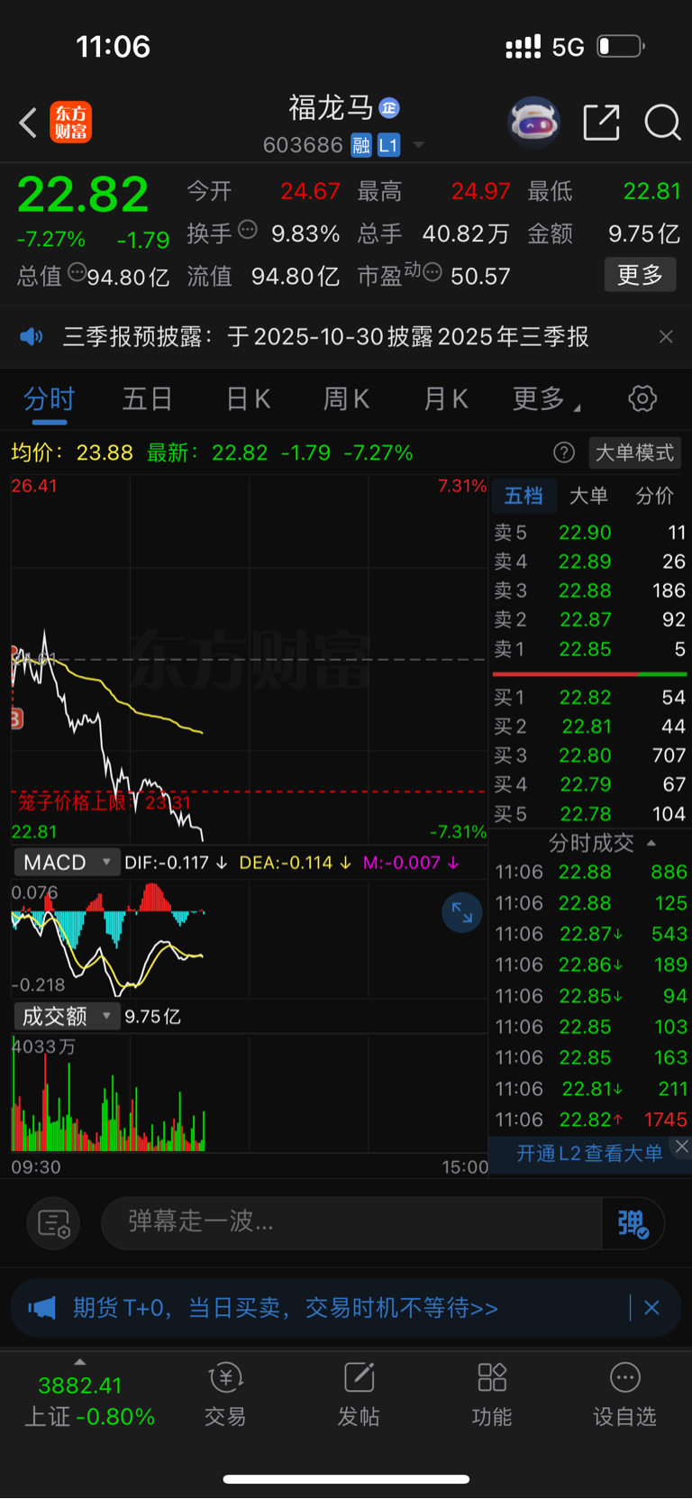 $福龙马(SH603686)$ 开盘吃一个跌停