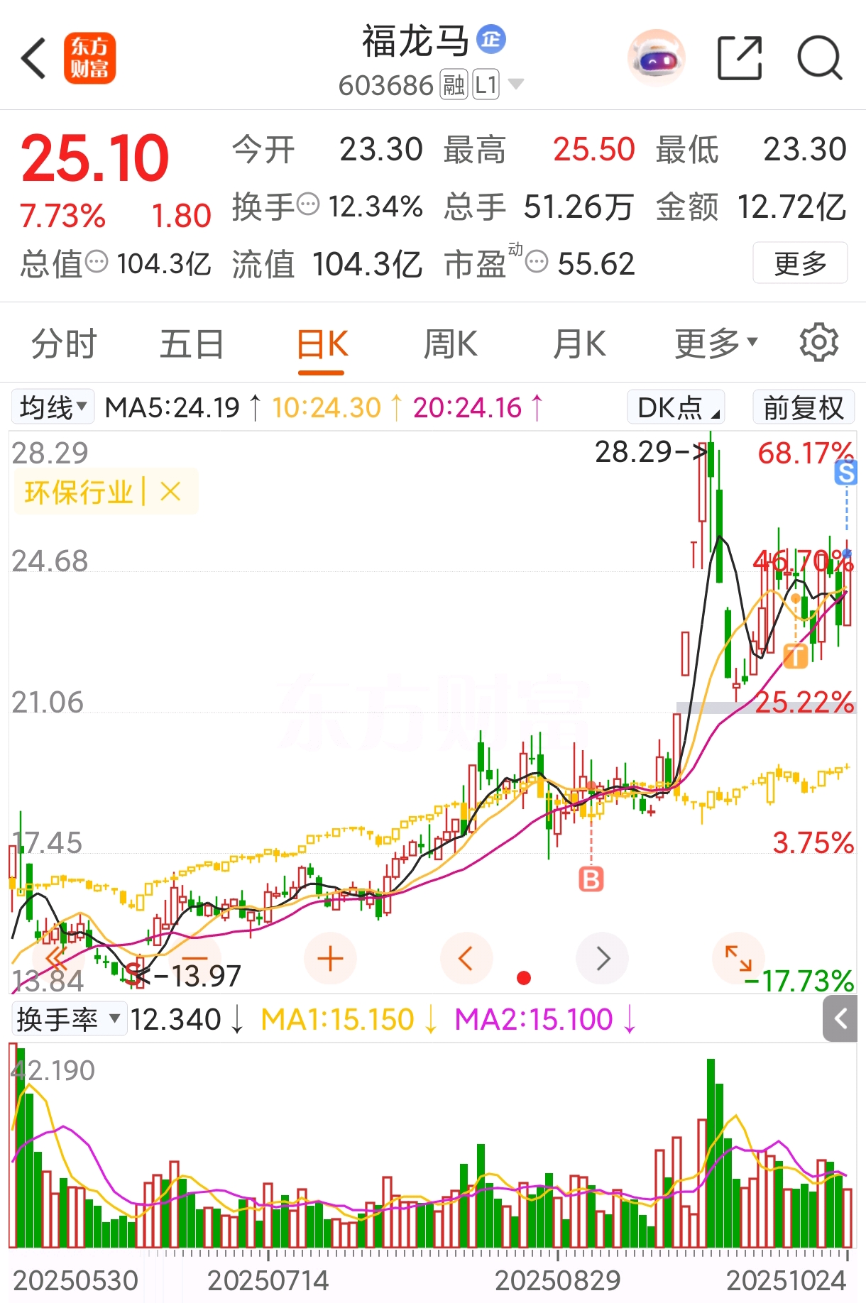 $福龙马(SH603686)$ 全仓,总是过山车,太刺激了,不玩了,再见