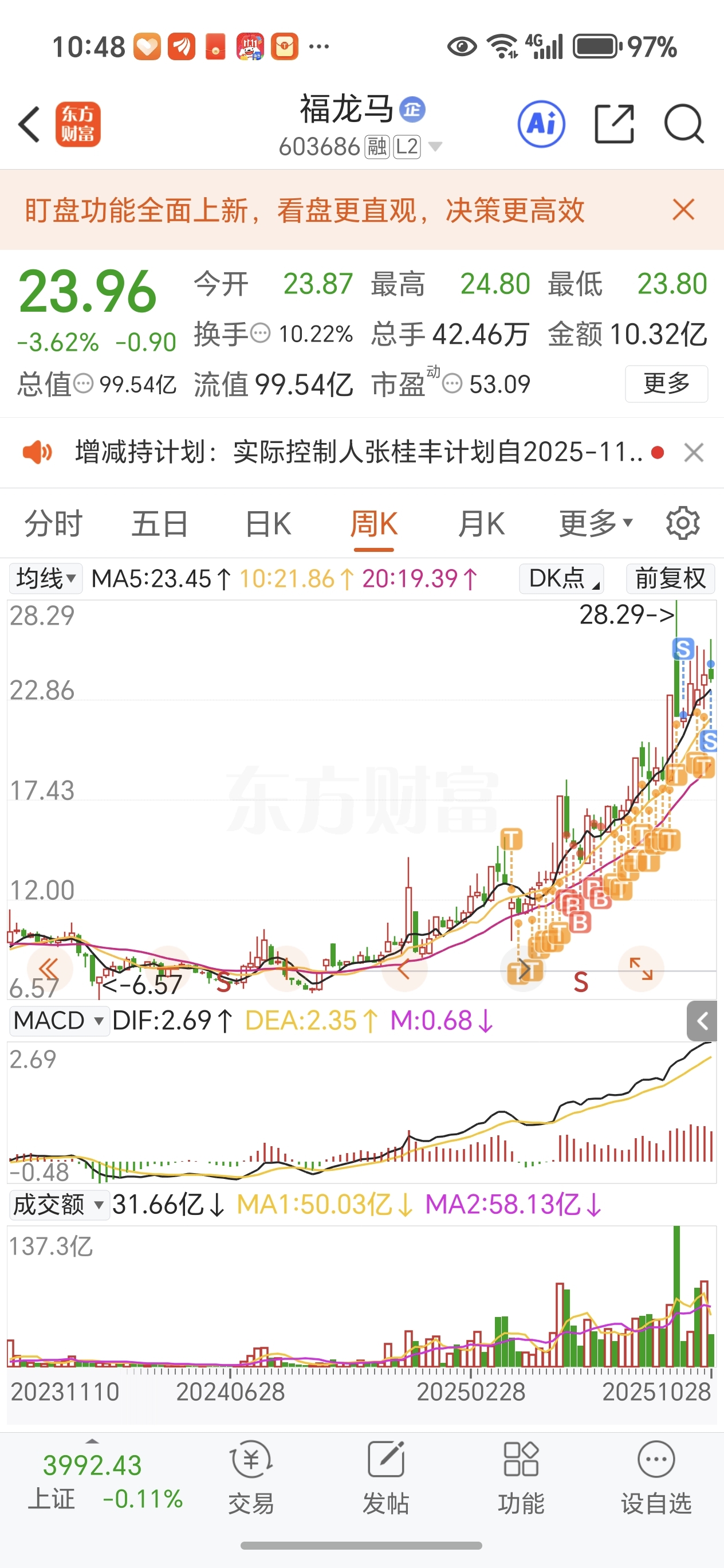 $福龙马(SH603686)$ 感谢福龙马,留两百股做纪念,有缘再见