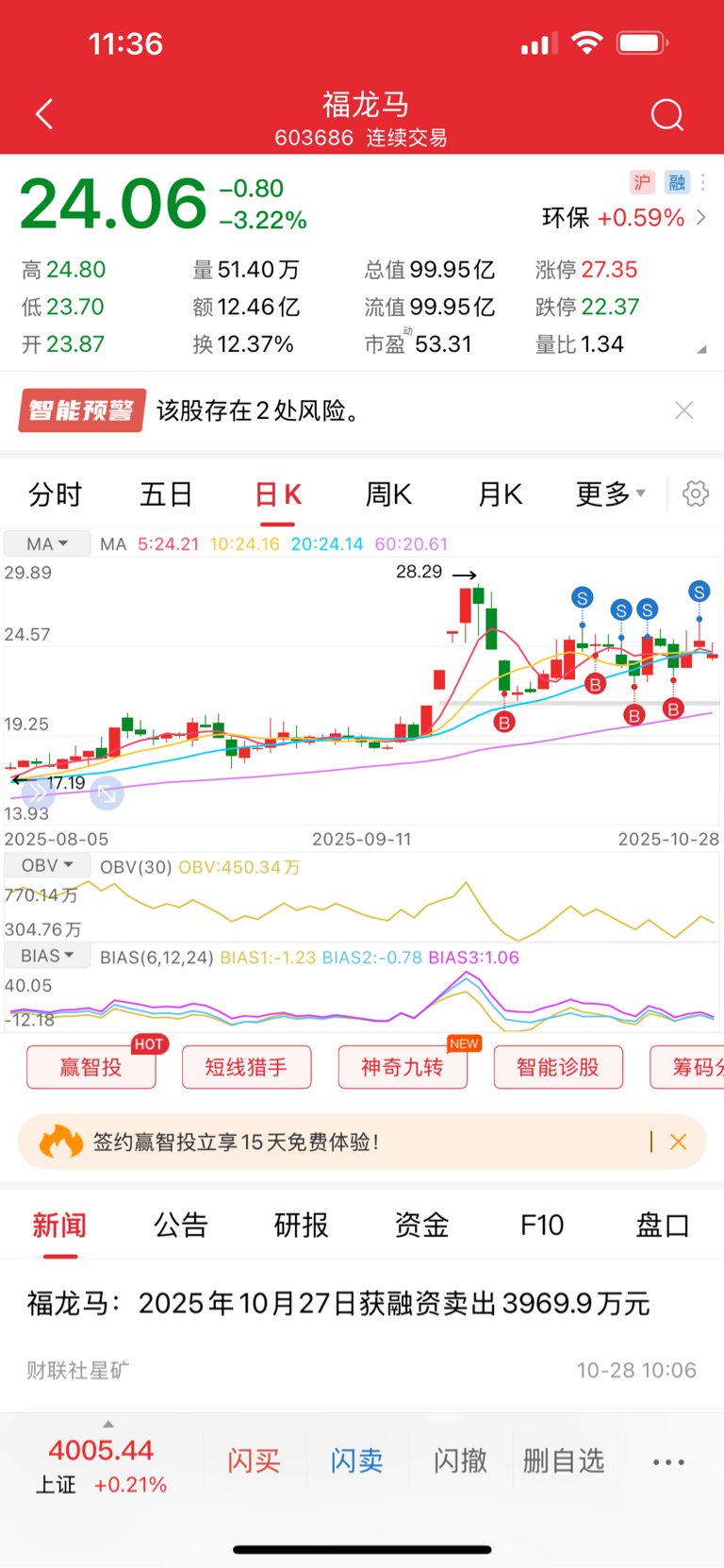 $福龙马(SH603686)$ 昨天卖是明智的,福建板块都涨疯了,还拉不动你