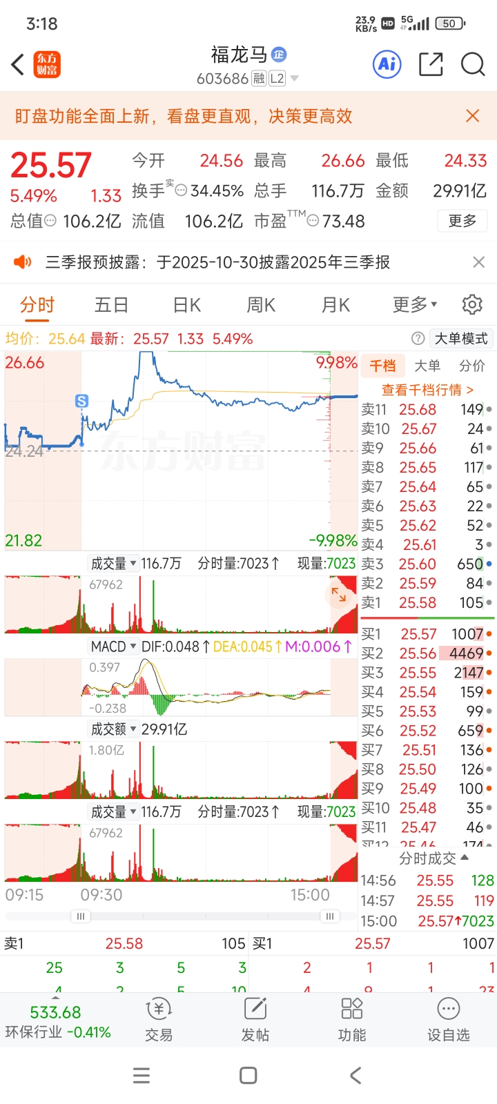 $福龙马(SH603686)$ 哎,早上下杀被吓出去了,只赚了几百块。