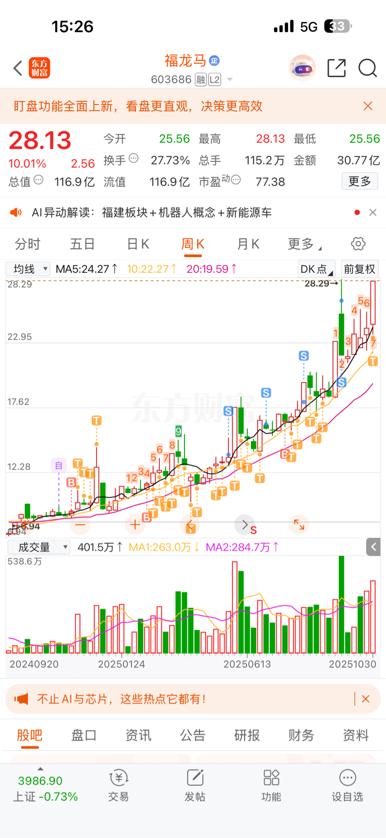$福龙马(SH603686)$ 胡汉三这周刚回来,小仓位博弈一下