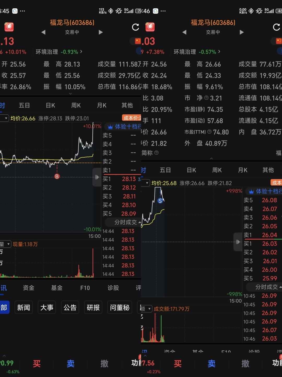 $福龙马(SH603686)$ 昨天涨停卖,今天买涨停,这波操作几分