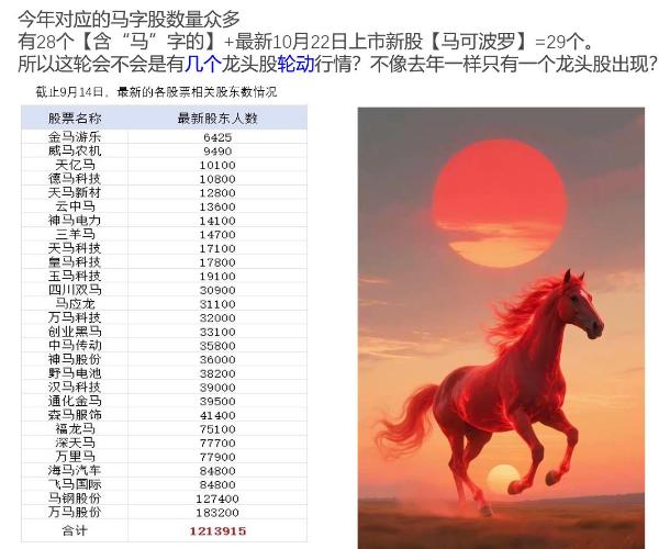 今年对应的马字股数量众多有28个【含“马”字的】+最新10月22日上市新股【马可