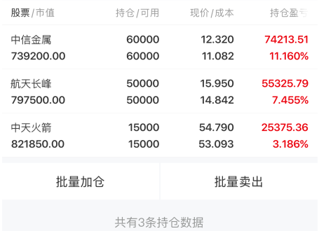 中天火箭:航天装备,周四适当调整洗盘,但不影响上涨趋势,目前处于拉升初期,周四的回撤没有跌破5均线,均线依然向上运行,距离前高空间还比较远,下方又临近筑底区域,所以耐心等。毕竟G他一起的航天长峰都爆发了,板块问题应该不大。