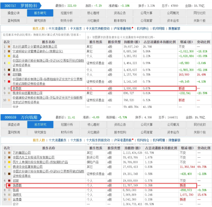 难怪很久没看到陈小群上龙虎榜了。今天看到陈小群买罗博特科和万向钱潮,也买成前十大股东了,这两个票持仓市值加起来有4个亿。之前都在说章盟主买寒武纪买成前十大股东。这轮牛市,大游资也在转型,几个亿的资金都躺在中线。