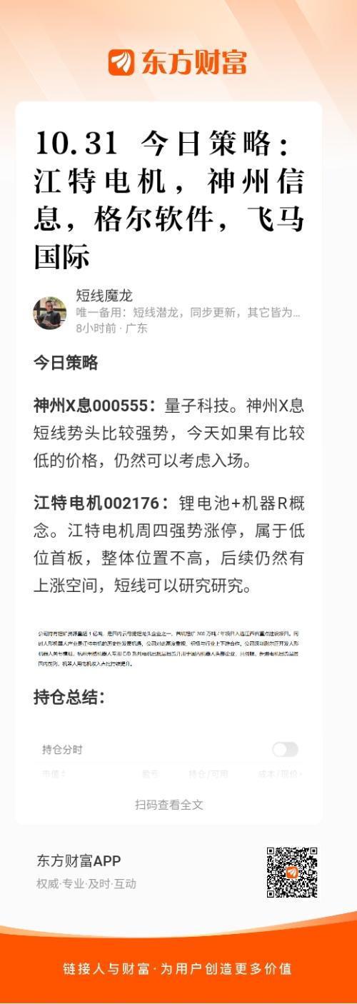 神州X息000555:量子科技。神州X息短线势头比较强势,今天如果有比较低的价格,仍然可以考虑入场。