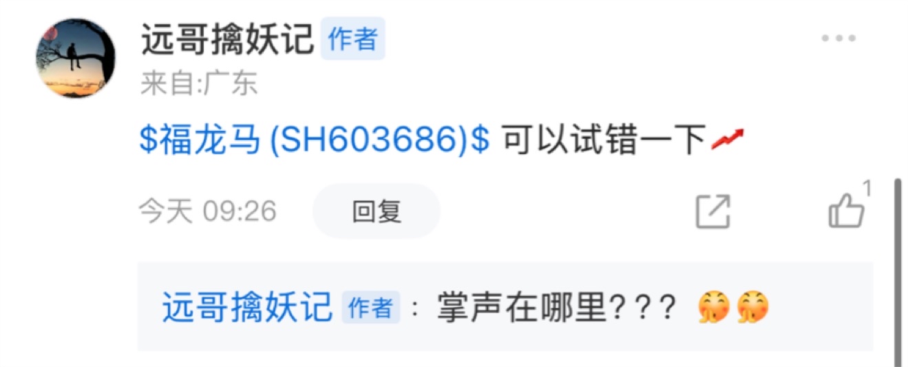 $福龙马(SH603686)$ 马前炮再次拿下! 恭喜追踪我文章的铁铁们成功拿下今日开门红!不敢想象关注一个每日分享马前炮的博主有多幸福啊~新来的铁铁也不用急远哥这里惊喜多的是只要你们准备小红心关注就行了~