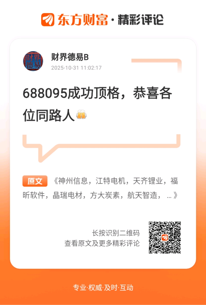 发表于 2025-10-31 13:31:43 东方财富Android版 发布于 山东