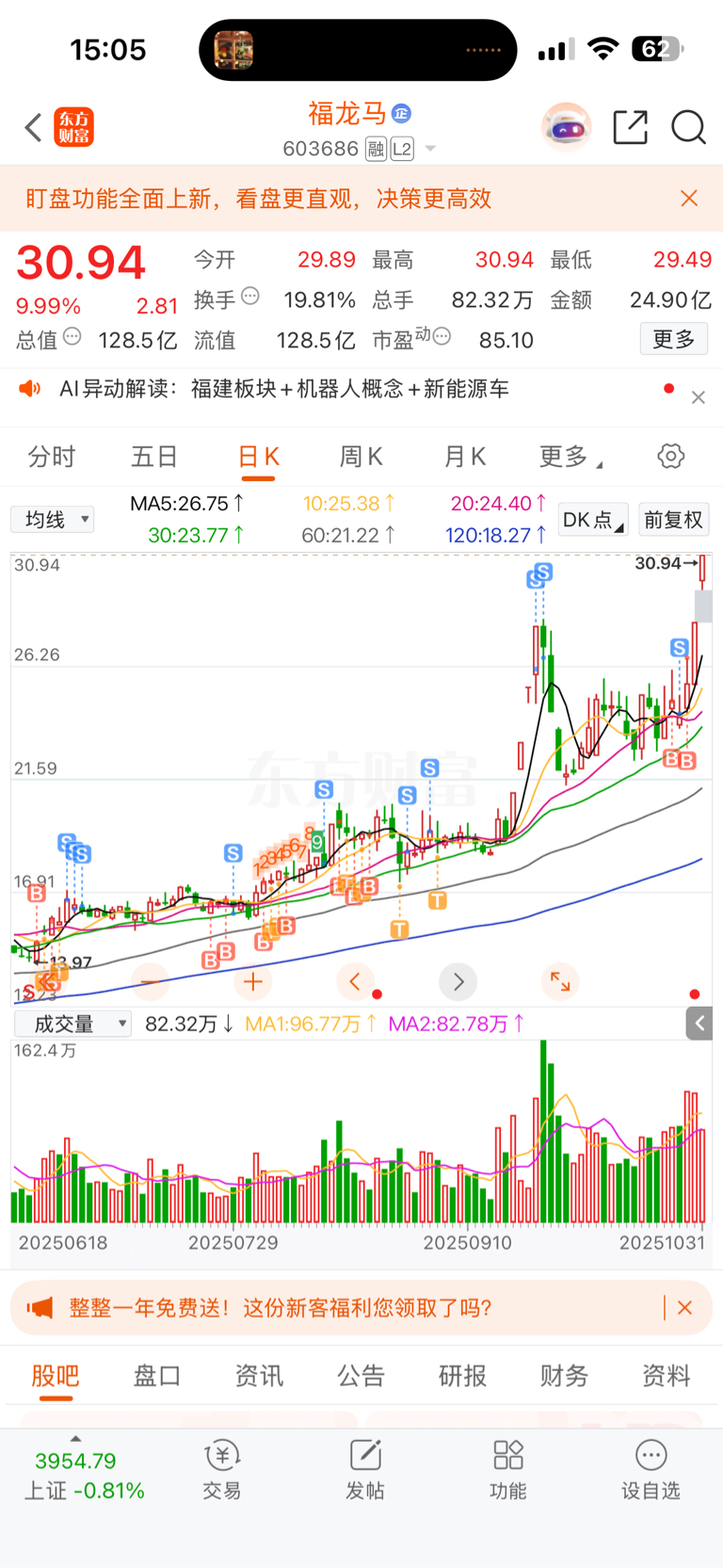 $福龙马(SH603686)$ 爱你马儿么么哒!老伙计们我又回来了!