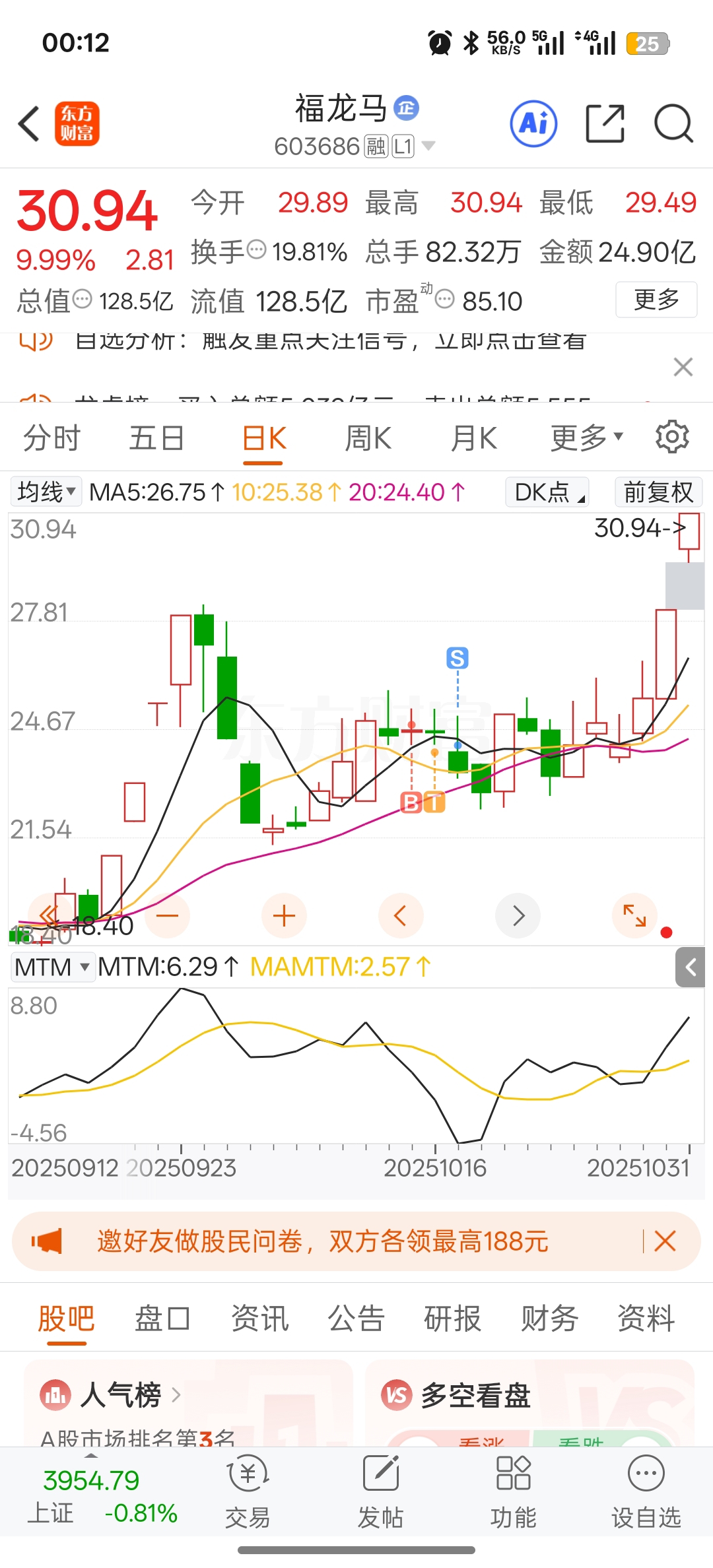 $福龙马(SH603686)$ 炒股真不能看这破股吧,一群大神天天再这儿说这票散户太多不会拉的,我居然信了,然后亏本卖的