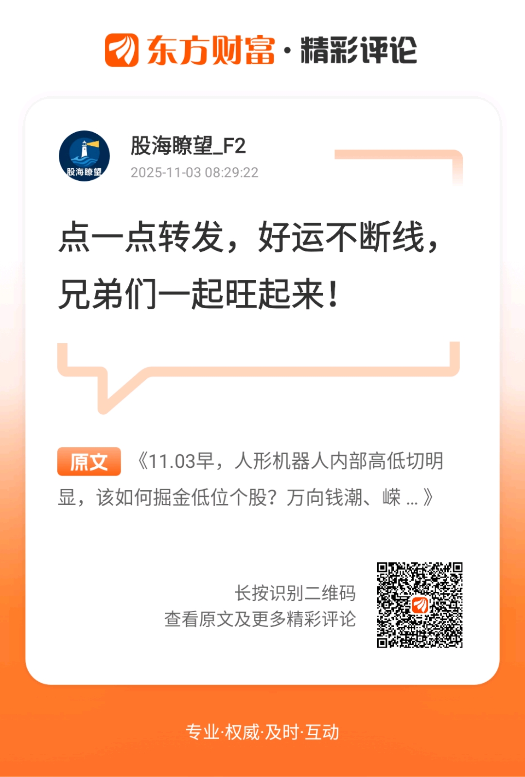 $万向钱潮(SZ000559)$万向钱潮:周五个股出现了早盘跳空向上以后收出涨停板的走势,目前来说,这一轮的前面连续涨停板的走势里当中,就已经反馈了个股这一轮的行情绝不简单。虽然上一轮的炒作里面有固态电池的驱动,有机器人的因素,走出了连续的两波上升,但随后线路的调整的情况,而从公司基本面反馈则是,目前公司是在人形机器人、低空飞行和无人机方面。公司的电池都是有所涉猎,并且可以应用在其中区域,其次则是公司的轴承产品给相关的机器人的客户送样,有望进入相应的供应链,所以相对题材较多。而这一轮的在经过了一轮修整以后,反身向上的走势也是非常的明显,这一轮的上升通道来说,非常的强势运行,而且连续的走出了连阳线。回踩以后再次涨停板,跳空向上,业绩并没有太大明显改善的情况之下,走出这个走势,就说明里面的资金想借着这一轮市场线路调整情况之下,发动一轮行情,走一波主线浪的趋势。