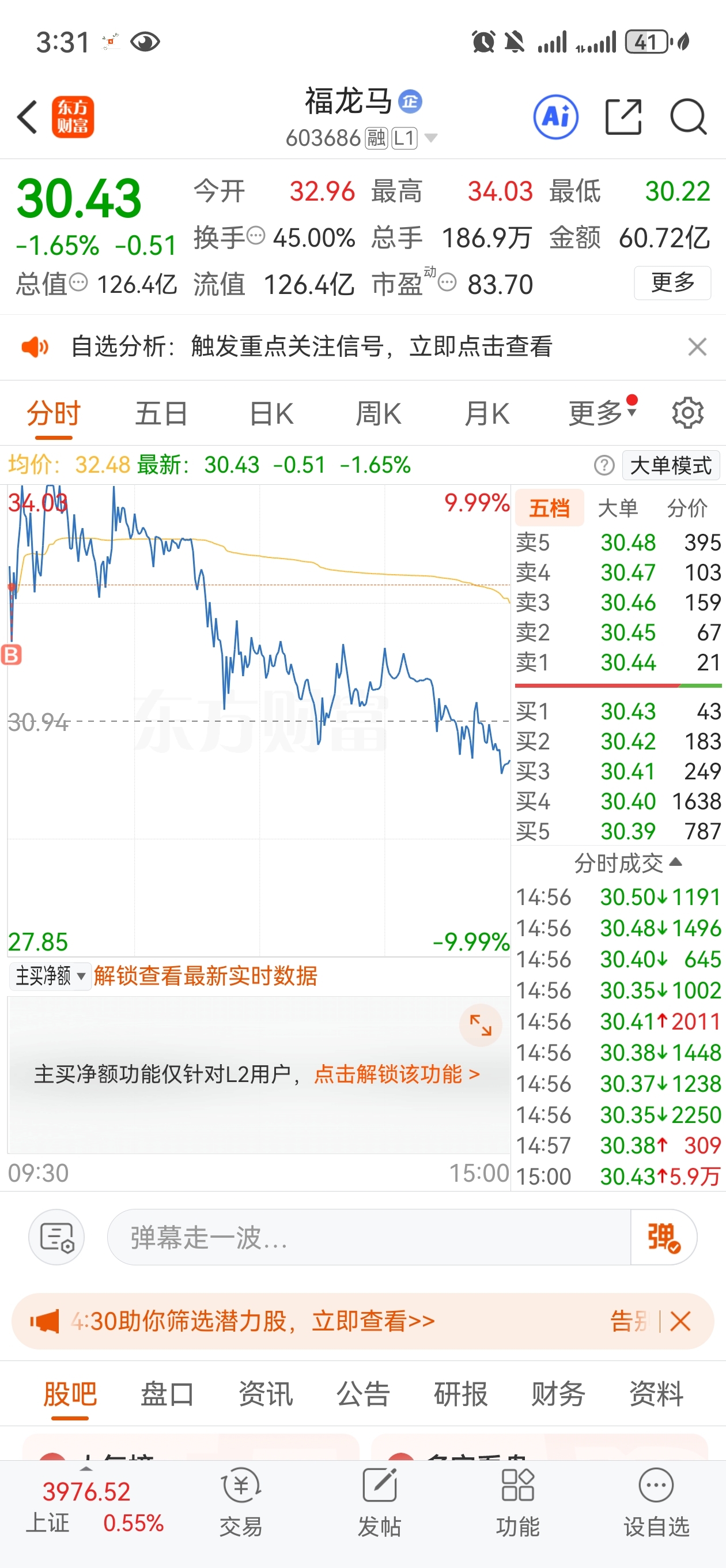 $福龙马(SH603686)$ 追高的过程,总让人瑟瑟发抖!!!