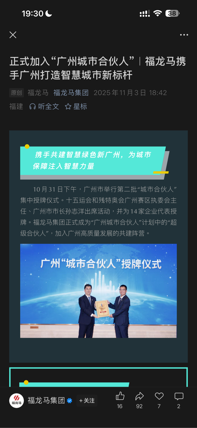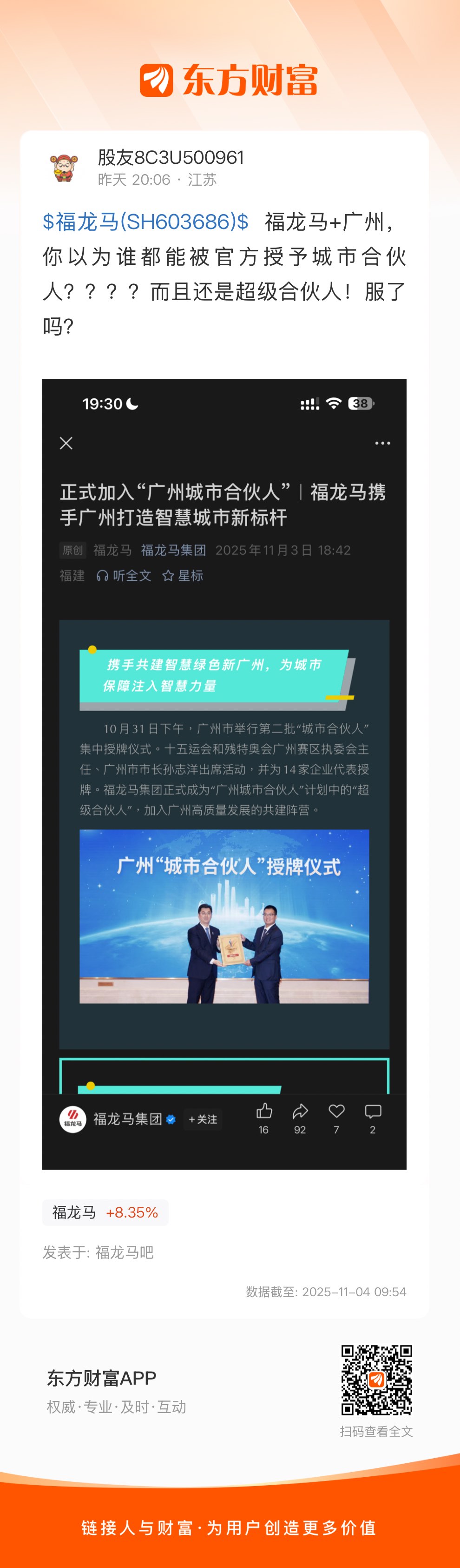 $福龙马(SH603686)$  福龙马+广州,你以为谁都能被官方授予城市合伙人????而且还是超级合伙人!服了吗?