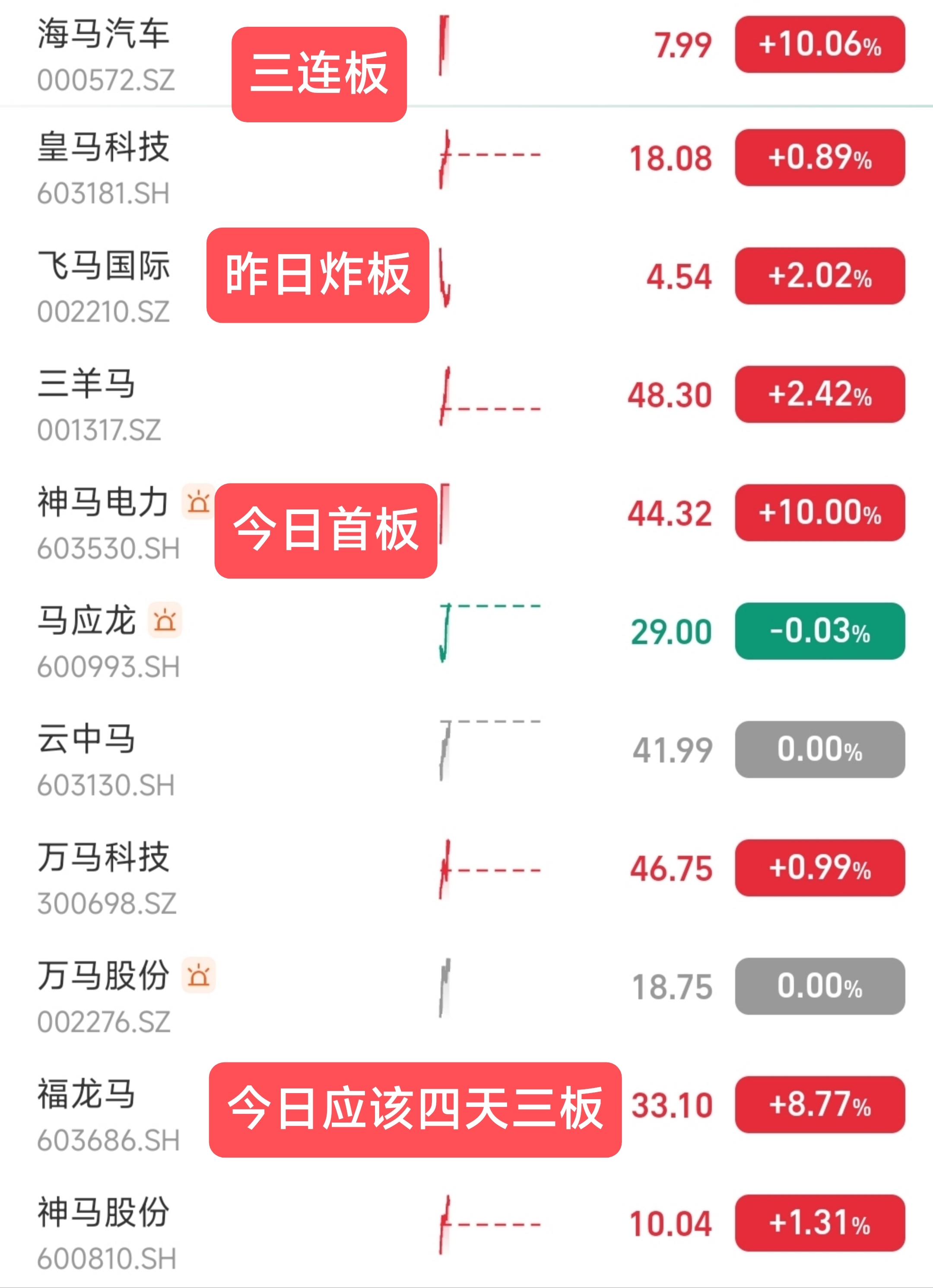 的大长腿没买上,去买了目前海马三板,首板,福龙马四天三板,看看今天马字辈能否全面