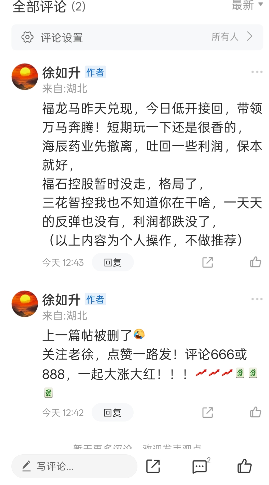 中午帖被删了重新发的好像你们也看不见目前手上持有福龙马,福石控股,三花智控。