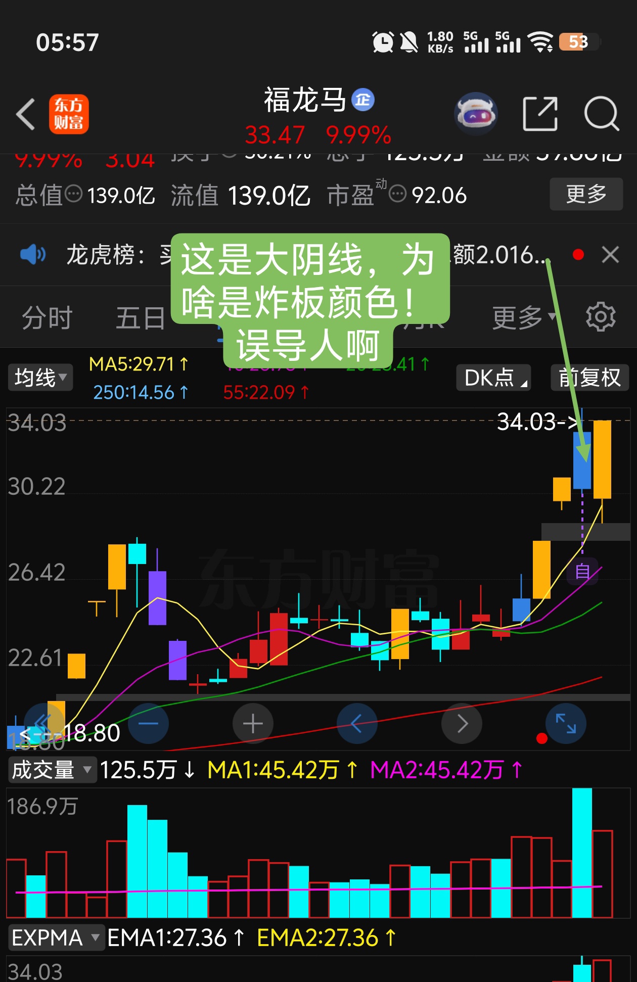 $福龙马(SH603686)$ 阴线和炸板颜色都分不清了吗?