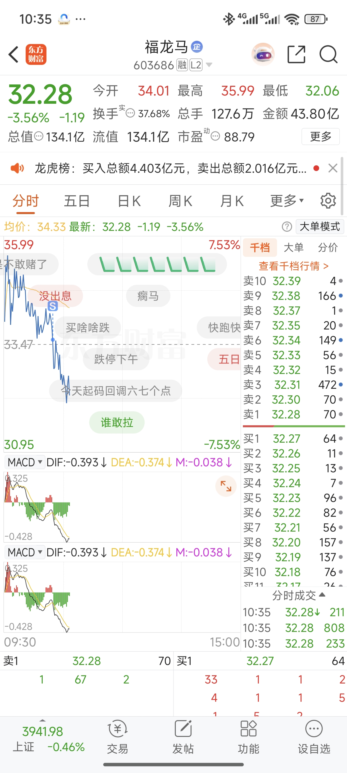 $福龙马(SH603686)$ 老是改不掉格局的想法,留下兄弟发财。下午涨停