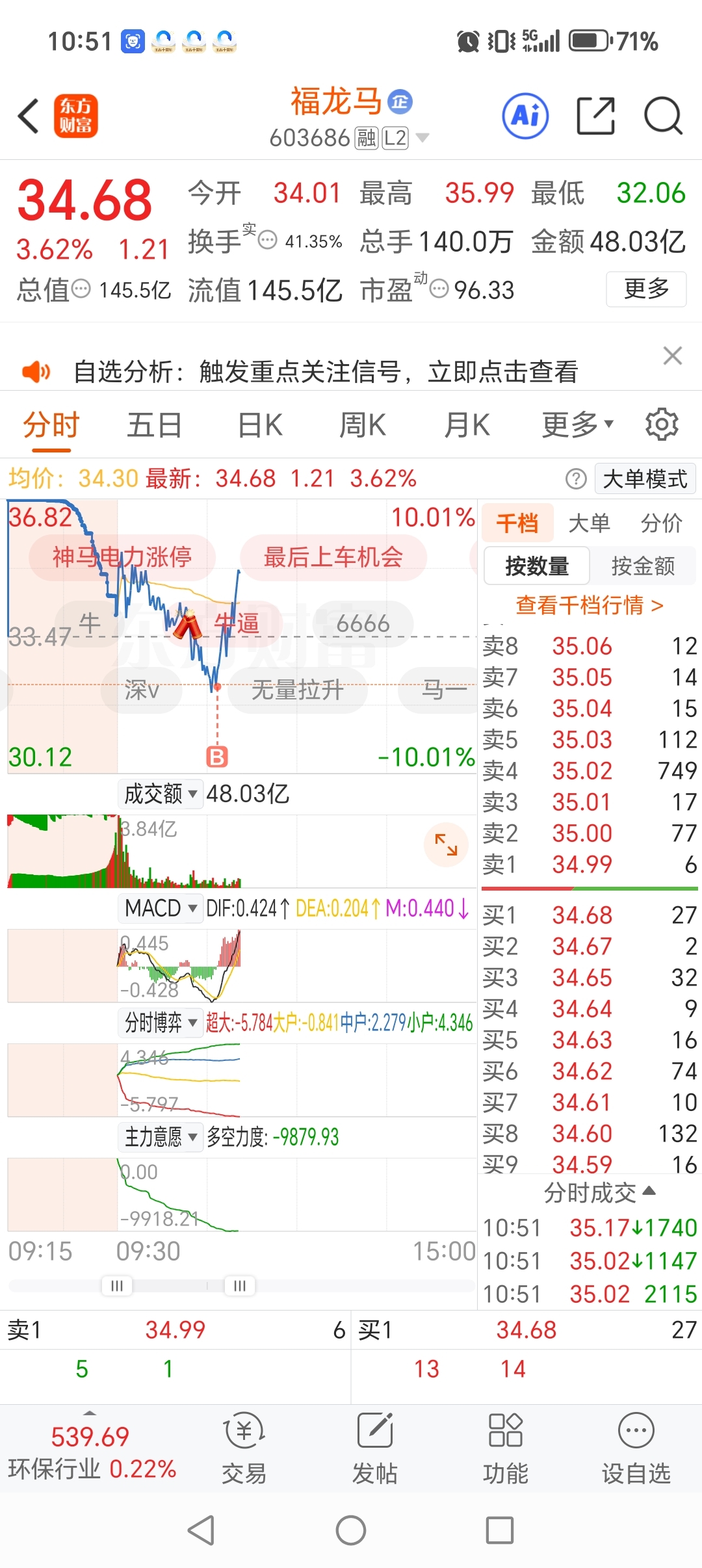 $福龙马(SH603686)$ 妈的没买到就只成交了一手
