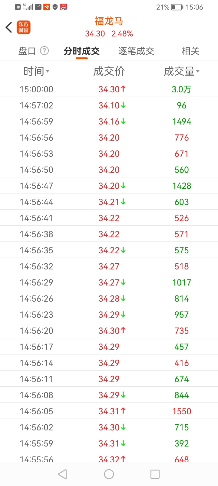 $福龙马(SH603686)$ 尾盘集合竞价34.30成交3万手是买入还是卖出呢?明天可能高开吗?