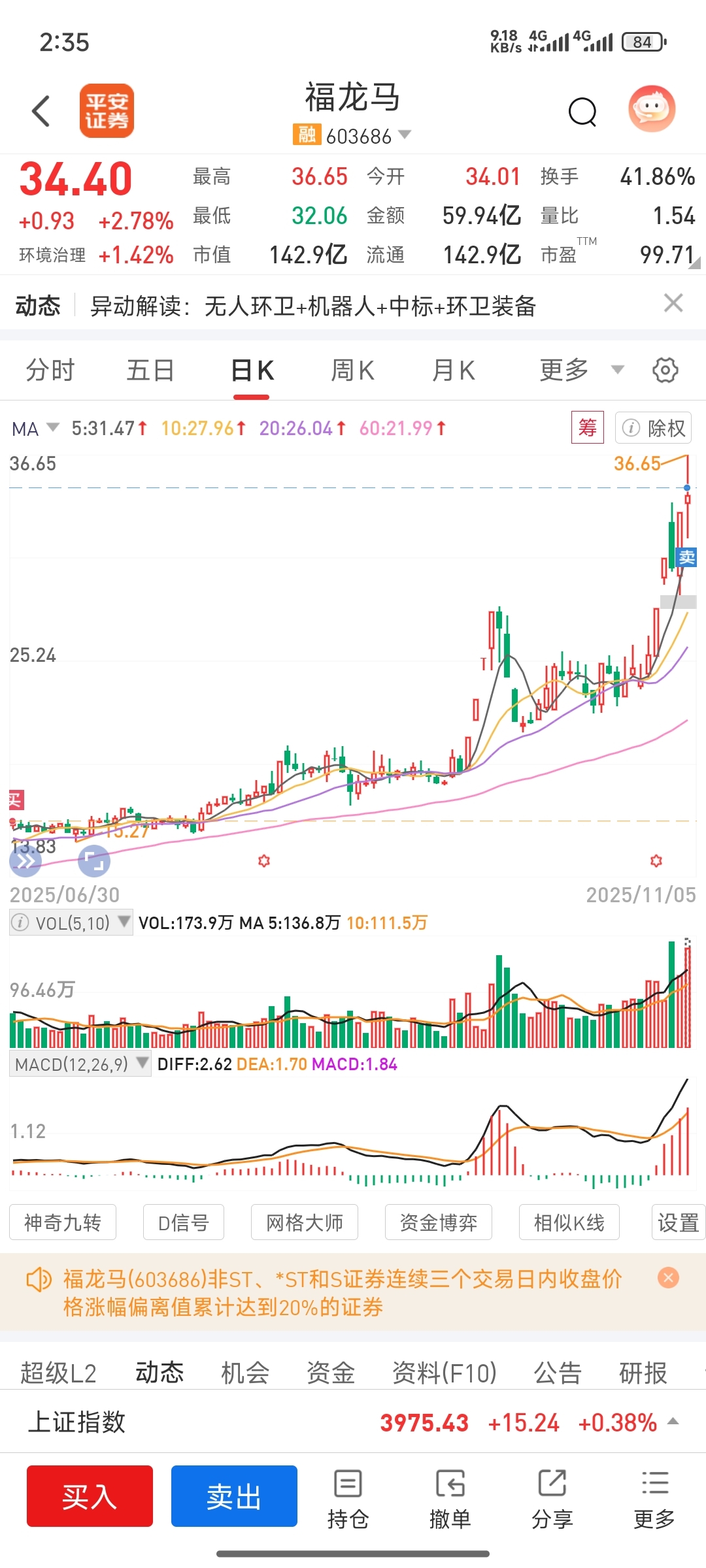 $福龙马(SH603686)$ 半仓埋伏几个月,一直没动过,今天出来。对于明年的生肖,我觉得是主线叠加谐音字,提前找好埋伏。像今年一样机器人叠加马成就了中马、万马、无人驾驶清洁机器人移动充电,成就了福龙马,我们要要找主线开始叠加,从鱼饵开始埋伏吃鱼头,吃鱼身,后面的行情交给博弈资金我们不参与。再见兄弟姐妹12年后我们在来福龙马决战紫禁之巅。祝大家福禄东海,龙马精神。