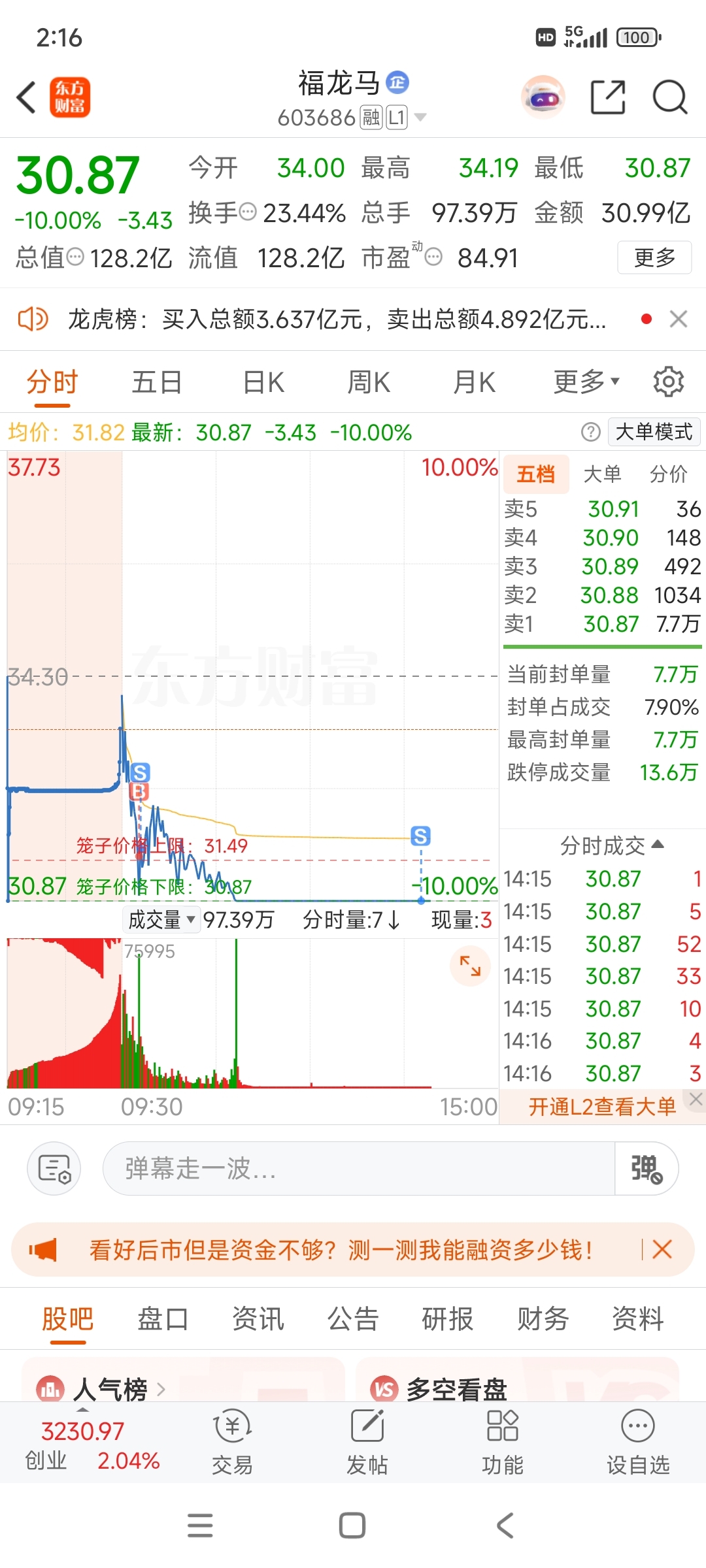 $福龙马(SH603686)$ 兄弟们,我排出去了