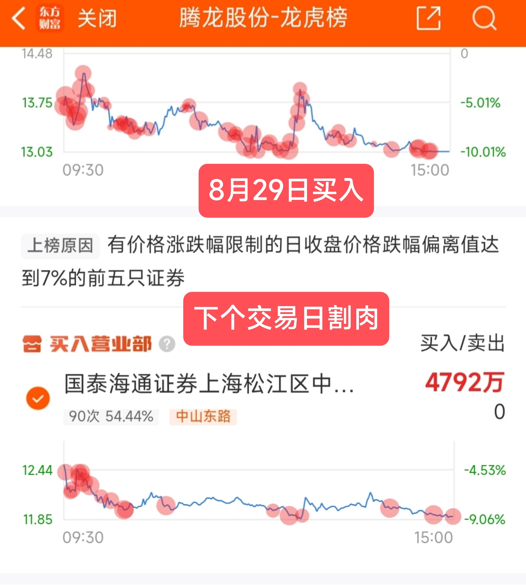 明天完蛋,看了下中山东路最近几个月的榜胜率很大,就看到腾龙买入是地板第二天割肉的