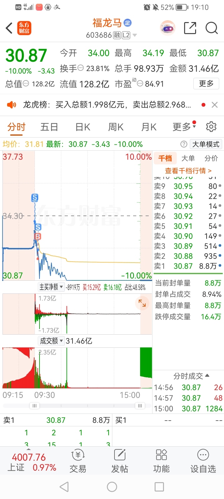 福龙马真坑,马字辈唯一跌停板被我买到了