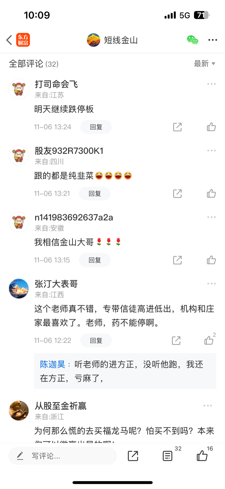 $福龙马(SH603686)$ 有支持就会有质疑,感谢支持金山的铁粉,我一直都说如果金山对你有帮助你就多看一下,如果没有帮助那拉黑我也是可以的,真真城城的做人做事,总会得到回报的,后面的路还很长,我们一起加油,福龙马大家觉得风险高获利可以下车,金山则不动,也不做T。