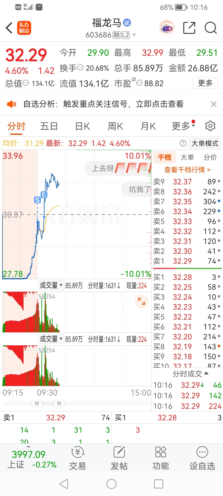 $福龙马(SH603686)$ 水下割肉清仓了你就涨?主力真会玩,龙马精神!