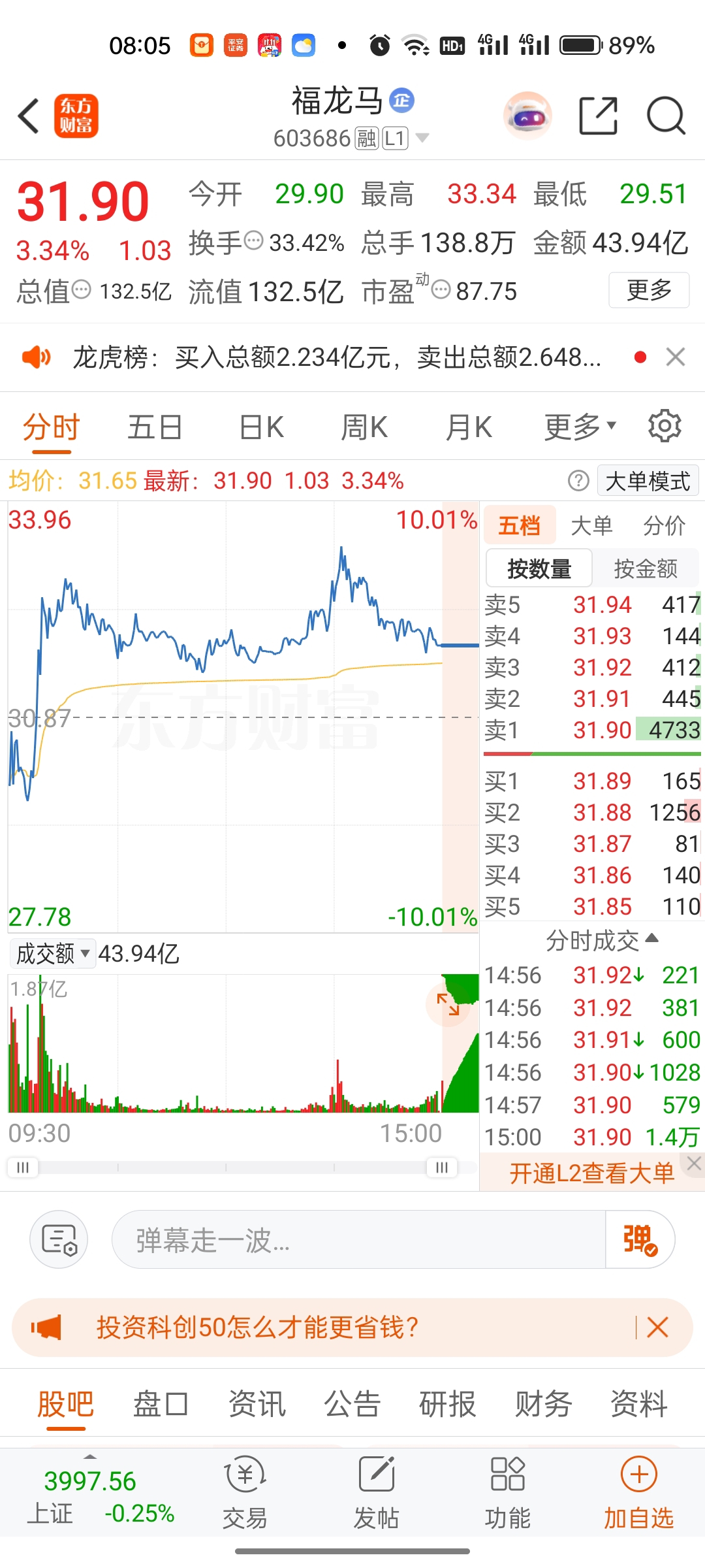 $福龙马(SH603686)$ #炒股日记# #股市怎么看# #收盘点评# #投资干货# 这只票风险太大,明后两天很可能跌停板出现粉丝们今天早上冲高就清仓,