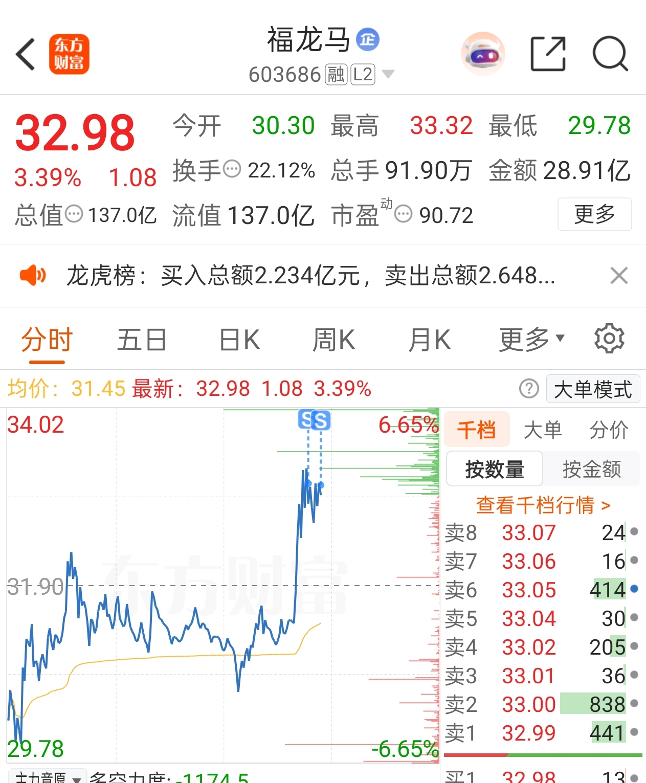 $福龙马(SH603686)$ 就喜欢这种票筹码很清晰,不追高的话这票就是送钱,很舒服量化主导得票还会有机会