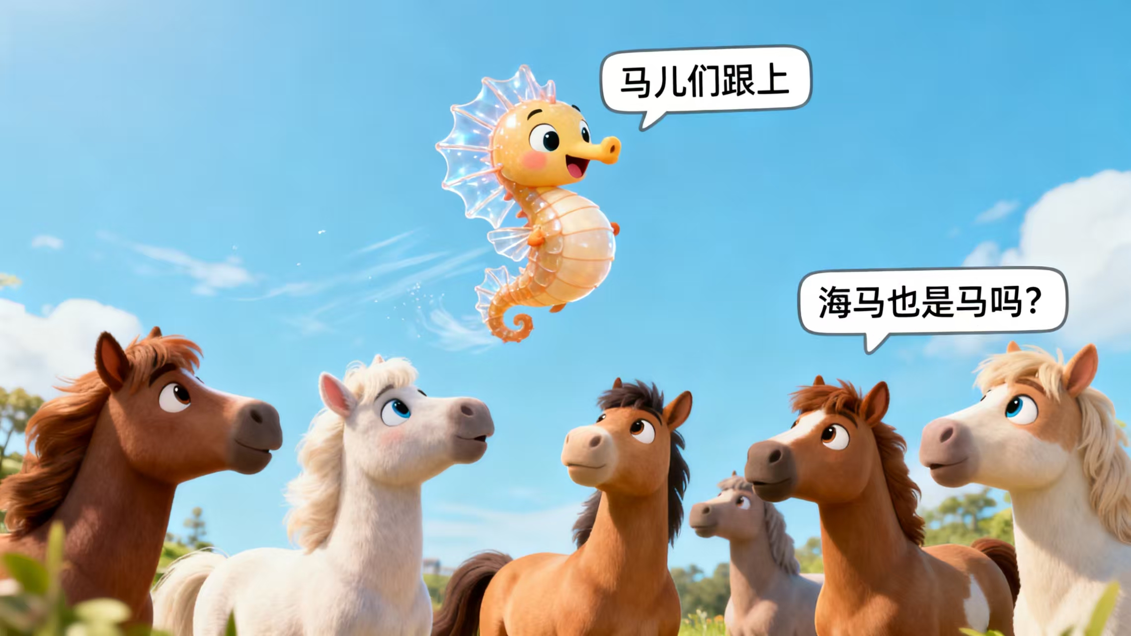 福龙马一动,马儿都跟着动,和海马谁是龙头一目了然。