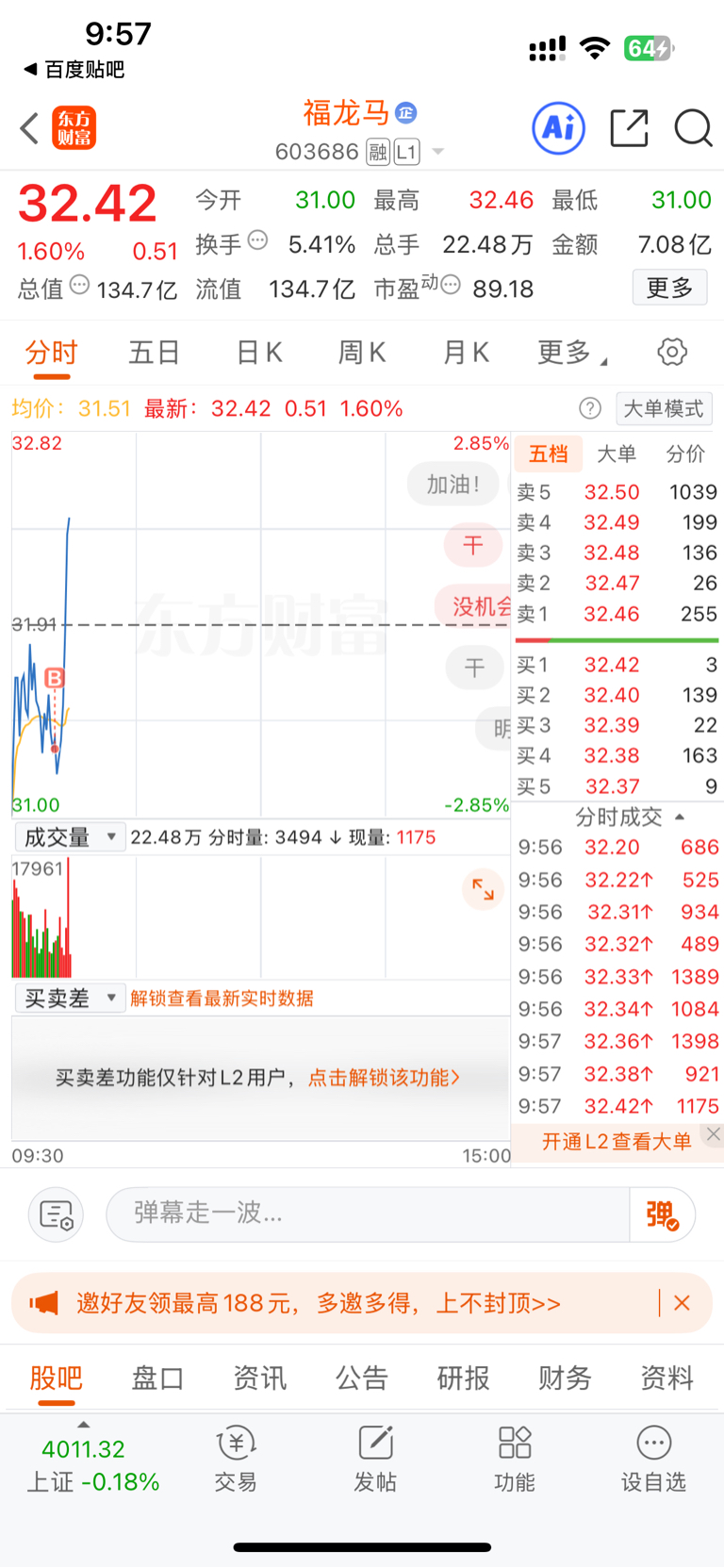 $福龙马(SH603686)$ 就问谁有我胆子大,早盘加仓位