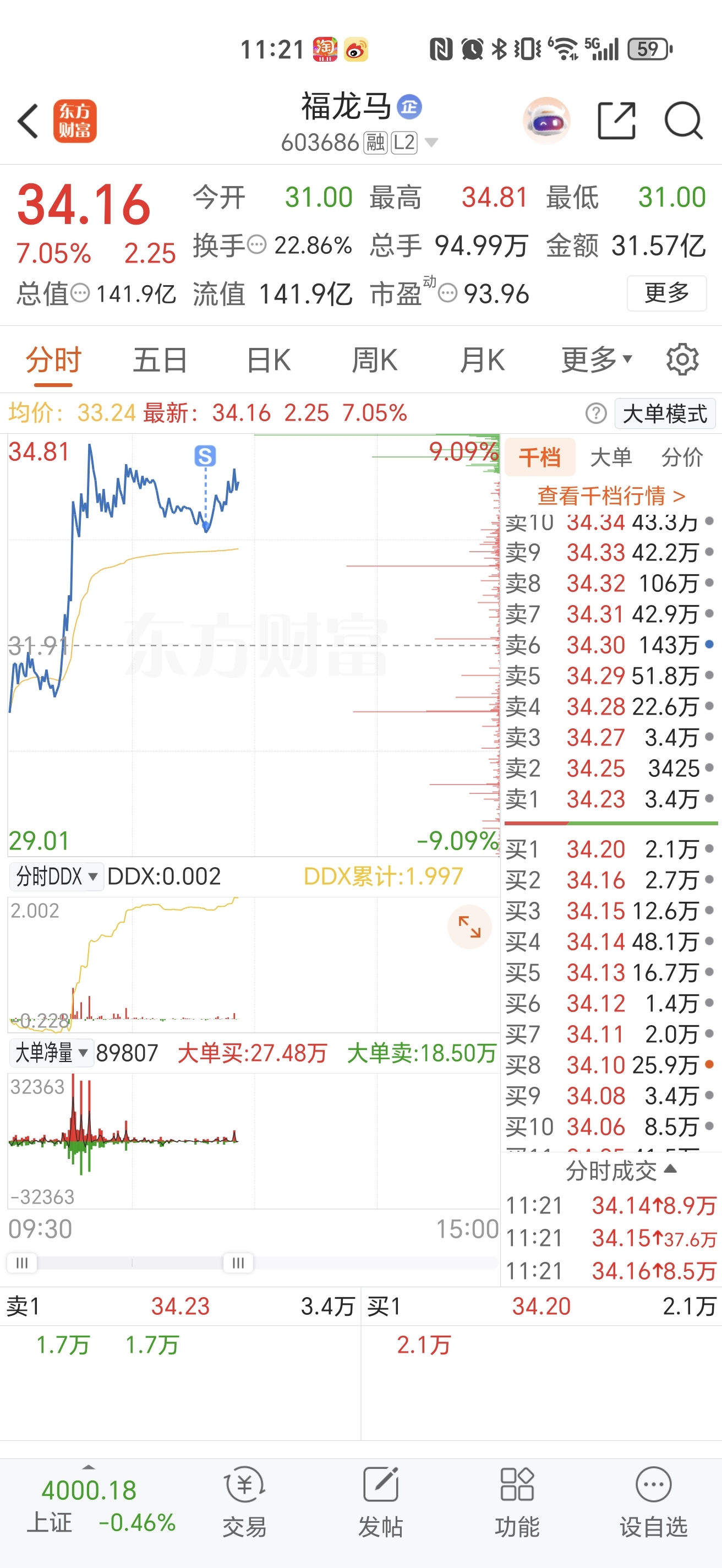 $福龙马(SH603686)$ 卖一手,就不信你不涨,呵呵