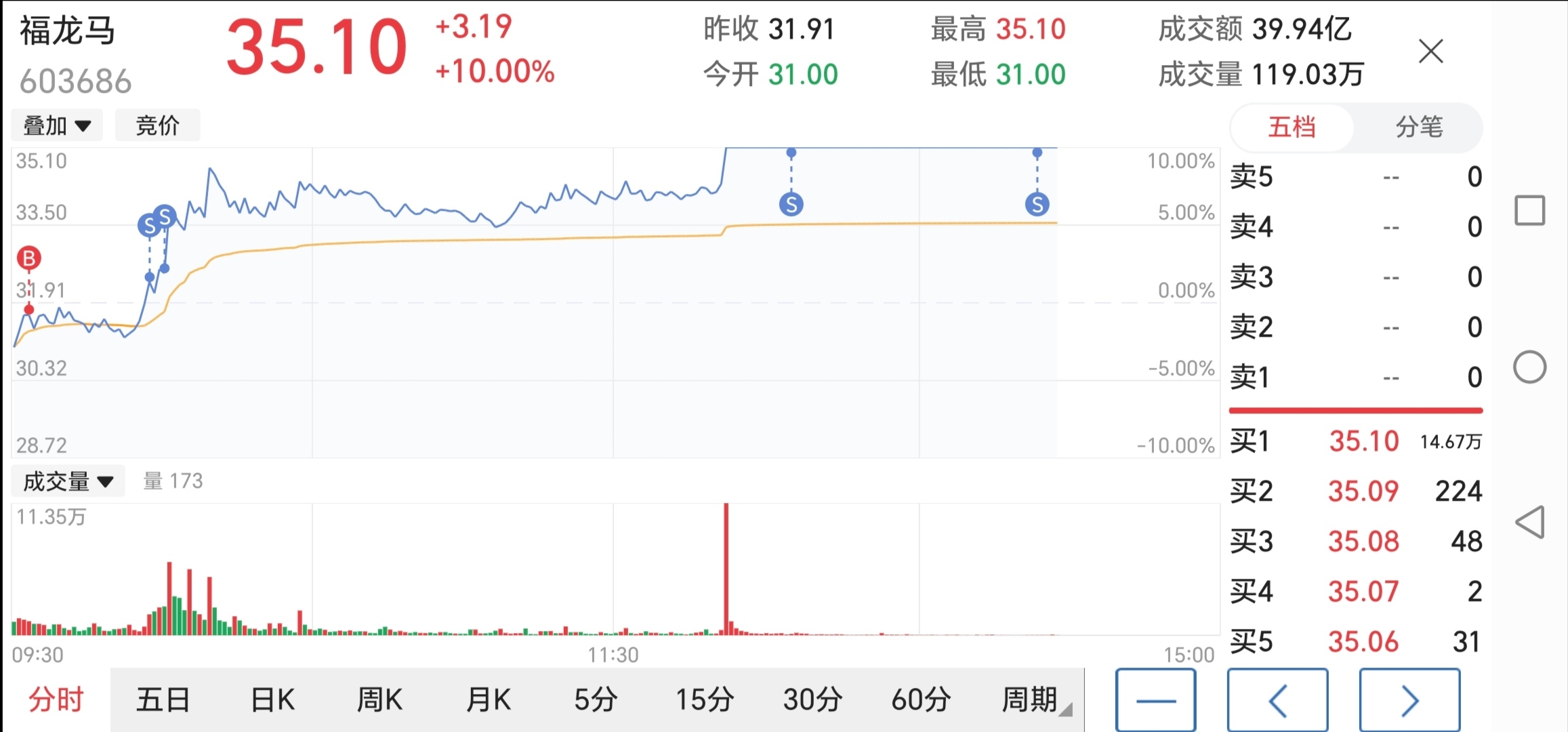 $福龙马(SH603686)$ 36.65没卖,今天给机会卖了