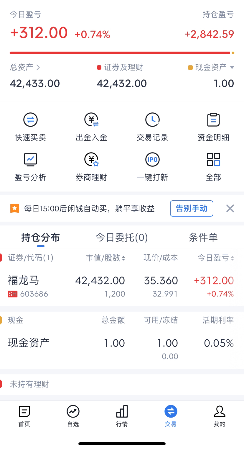 好家伙、早上3个点没来的及卖出,看他一直震荡、就跑去睡了会觉、结果睡过头了、刚一