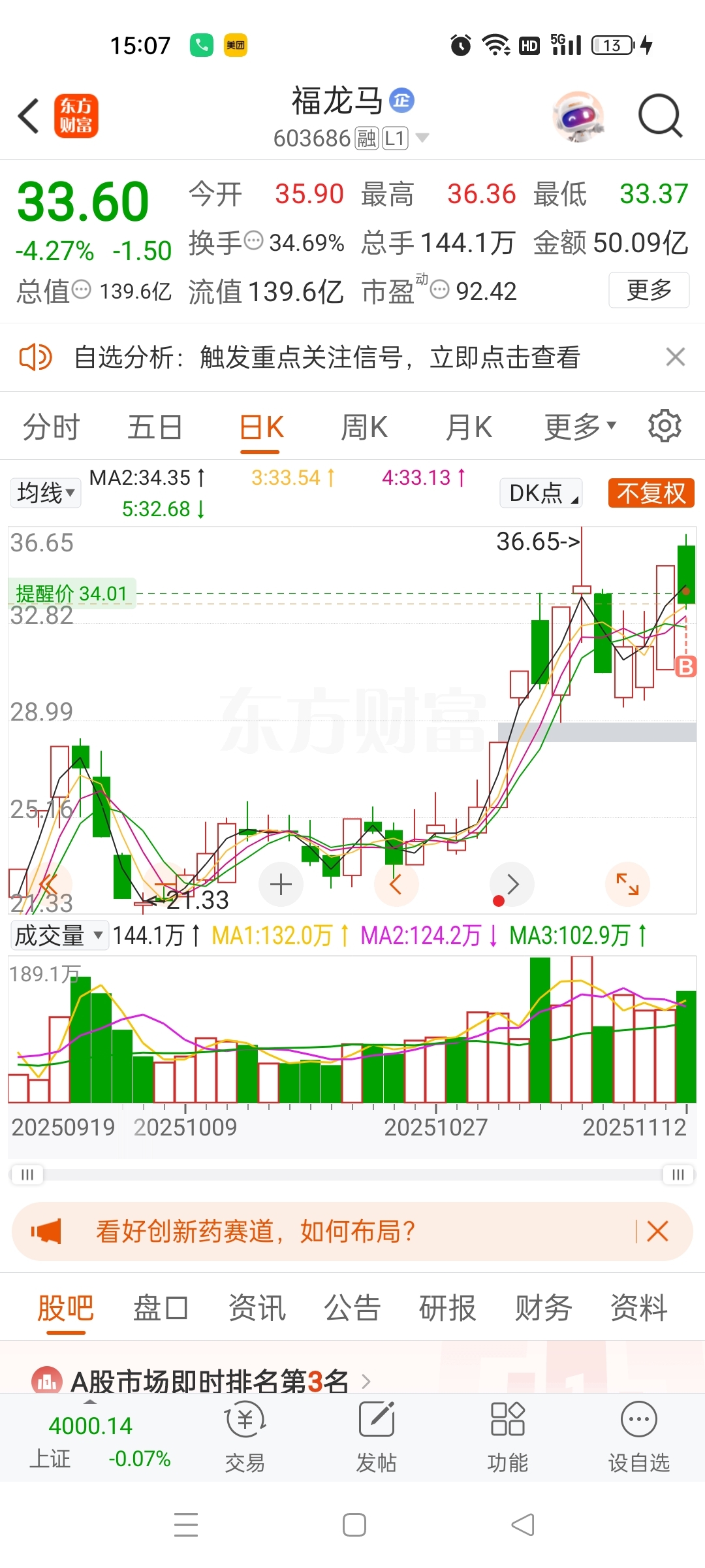 $福龙马(SH603686)$ 今天的开盘价是够的,还是看好明天