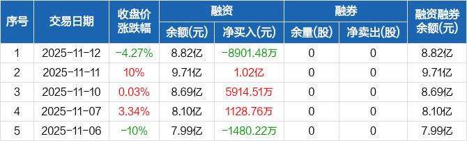 福龙马:融资净偿还8901.48万元,融资余额8.82亿元(11-12)